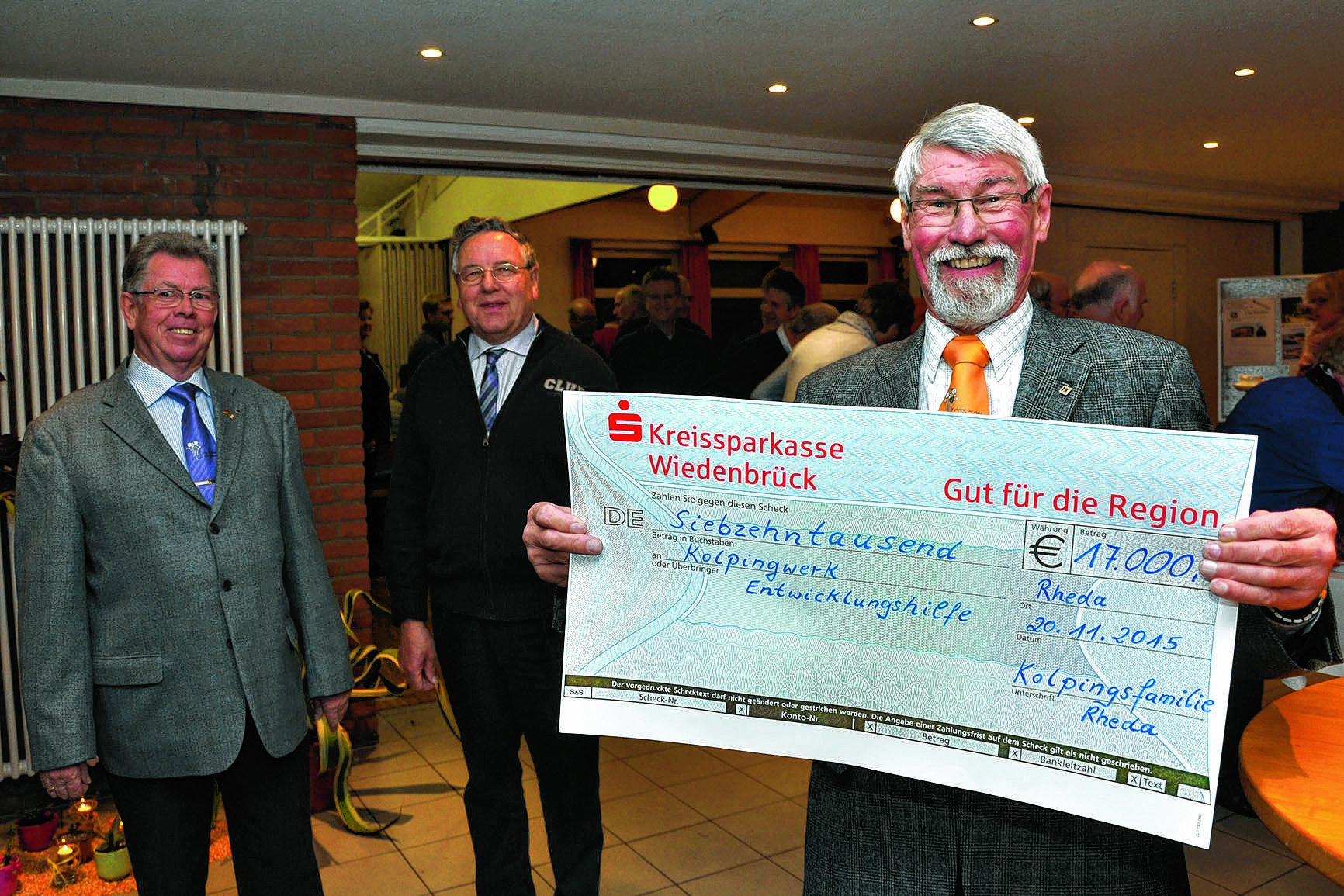 Rheda-Wiedenbrück (wl). 17 000 Euro hat die Kolpingsfamilie Rheda für Projekte zur Selbsthilfe in Mexiko gesammelt. Mit großem Stolz überreichte Hubert Pohlmann, Vorsitzender der Kolpingsfamilie, den Scheck an den Vorsitzenden des Kolping-Entwicklungshilfevereins, Heinz Pollmeier.