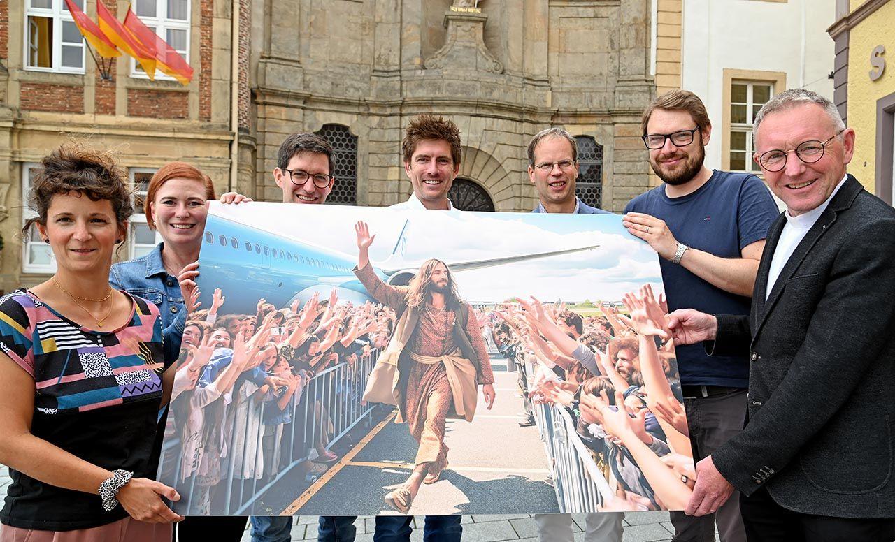 Hannah Bernhard (Fraunhofer IEM), Alexandra Boxberger, Dominik Kräling (beide City-Pastoral), Dr. Harald Anacker (Fraunhofer IEM), Heiko Appelbaum (Citymanager), Tommy Falkowski (Fraunhofer IEM) und Benedikt Fischer freuen sich auf viele Besucher. (Foto: Patrick Kleibold)