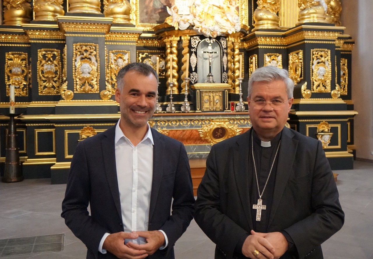 Erzbischof Dr. Udo Markus Bentz überreicht Ernennungsurkunde an Jun.-Prof. Dr. Matthias Daufratshofer.