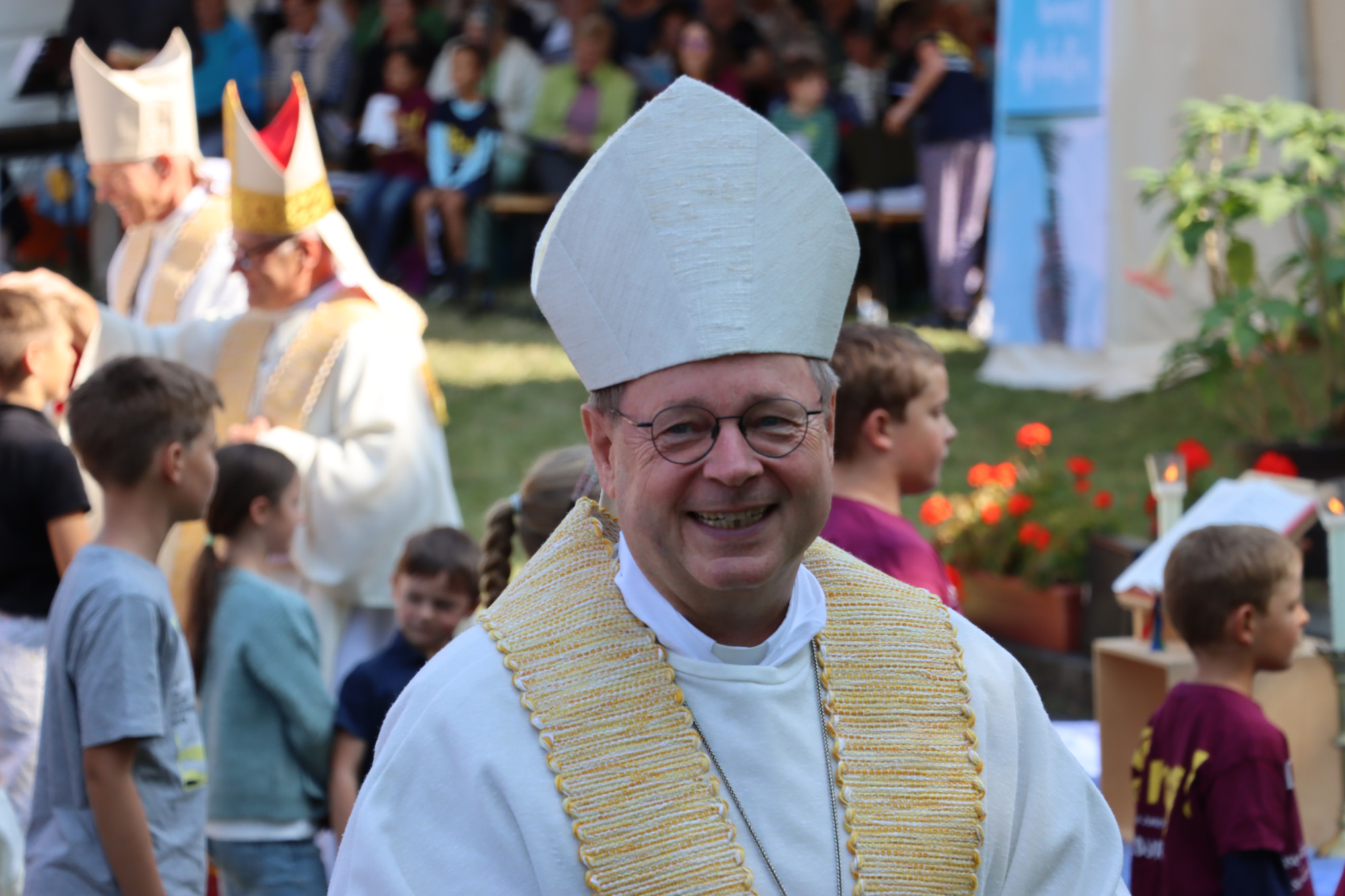 Bischof Dr. Georg Bätzing, Vorsitzender der Deutschen Bischofskonferenz, griff in seiner Festpredigt die Herausforderungen der gegenwärtigen Zeit auf und betonte die Bedeutung eines festen Glaubens an den offenen Himmel. „Diejenigen in unserem Land und in Europa, die auf die beängstigenden Krisen der vergangenen Jahre und Jahrzehnte mit allzu simplen Lösungsmodellen, mit Ressentiment und Abschottung, mit Hass und Hetze gegen Fremde und Andersdenkende, mit gezielten Fake News und der inneren Zersetzung menschlicher Grundwerte antworten – die so ihr Herz verschließen für Gott und den Nächsten, die sehen auch keinen offenen Himmel über sich“, sagte Bischof Bätzing.