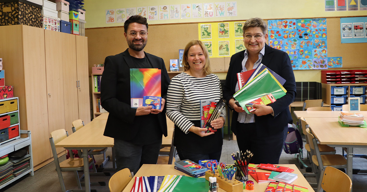 Im Rahmen der „Aktion Schulmaterial“ erhalten alle Grund- und Förderschulen in Herne zum Start in das Schuljahr eine Auswahl aus 30 verschiedenen Schulmaterialien. Die Verteilung der Materialien erfolgt im Laufe des Schuljahres über die Lehrer:innen, damit die Hilfe diskret genau dort ankommt, wo sie benötigt wird. Jutta Himmel, Schulleiterin der Grundschule an der Vellwigstraße, ist begeistert von der Aktion: „Es gibt immer wieder Kinder, die zu Schuljahresbeginn ohne ausreichendes Schulmaterial zur Schule kommen oder bei denen im Laufe des Schuljahres das Schulmaterial nicht nachgekauft werden kann. Wir sind froh, einen Fundus an Unterrichtsmaterialien zu haben, auf den wir dann zurückgreifen können.“