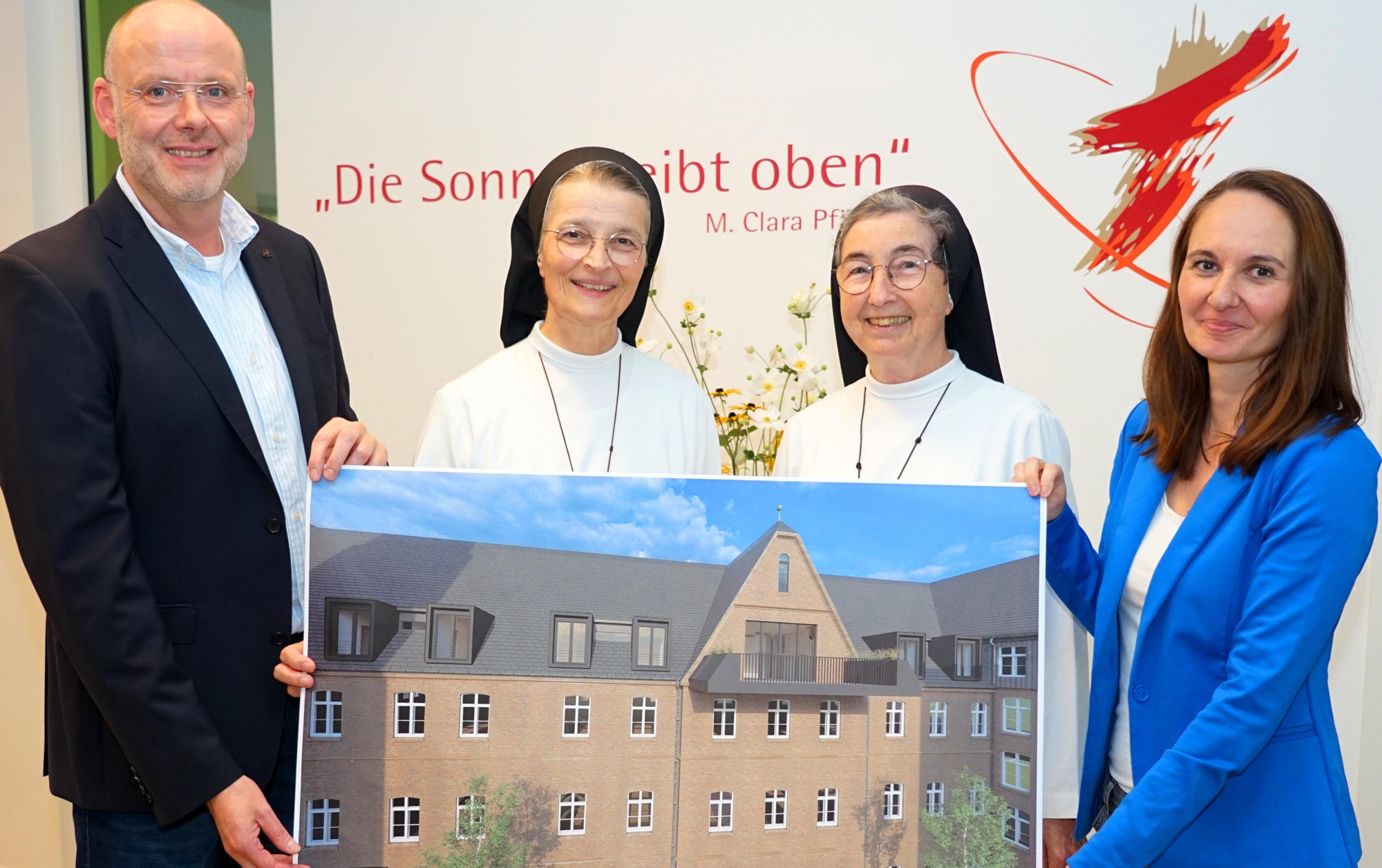 Das Altenheim St. Clara am Mutterhaus der Franziskanerinnen Salzkotten beginnen demnächst umfangreiche Umbau- und Erweiterungsarbeiten. Damit werden die bisher 67 Einzelzimmer-Pflegeplätze auf insgesamt 79 aufgestockt. Die Franziskanerinnen reagieren mit diesem Schritt auf einen wachsenden Bedarf und schaffen zugleich moderne, offene Räume, die Komfort und Lebensqualität bieten.