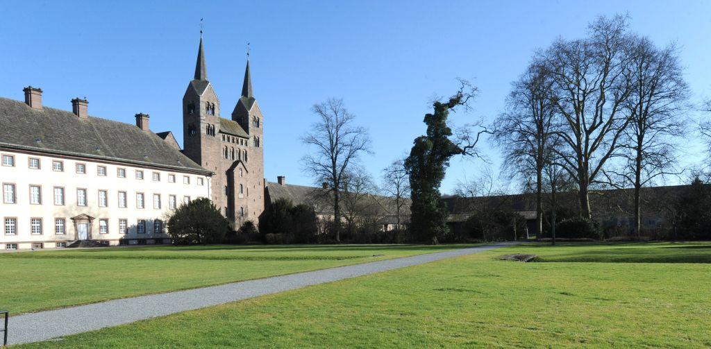 Westfassade des Schlosses und die Abteikirche im ehemaligen Kloster Corvey am 3. Juni 2013 in Höxter. (Foto: KNA)