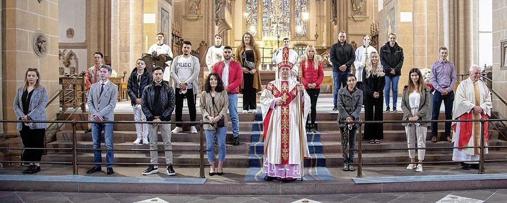 Paderborn (pdp). 16 Erwachsene aus dem Erzbistum haben im Paderborner Dom von Weihbischof Matthias König das Sakrament der Firmung empfangen. Gemeinsam mit ihren Firmpaten sowie maximal drei Angehörigen feierten die Gefirmten, dass sie nun ganz in die Gemeinschaft der Christen aufgenommen sind. Zu den Gefirmten gehören beispielsweise Christen, die den christlichen Glauben angenommen haben und erst vor Kurzem getauft wurden, ebenso wie Christen, die als Kind getauft wurden und den Glauben jetzt wieder leben und dazu auch das Firmsakrament empfangen wollen. Neun der erwachsenen Firmlinge waren Mitglieder der Italienischen Katholischen Mission Paderborn.Es sei wichtig, Menschen zu erleben, die von Gott Zeugnis geben, die mit ihrem Leben bezeugen, dass Gott und der Glaube an ihn für sie bedeutsam sei, sagte Weihbischof Matthias König im Gottesdienst. „Gottes Geist tröstet, stärkt und ermutigt.“ Zweimal im Jahr lädt das Erzbistum erwachsene katholische Christen, die sich firmen lassen möchten, zu einer eigenen Firmfeier für Erwachsene ein. Im Frühjahr findet sie in Paderborn statt, im Winter am Beginn der Adventszeit in Werl. Die nächste Erwachsenenfirmung wird am 29.November gefeiert.