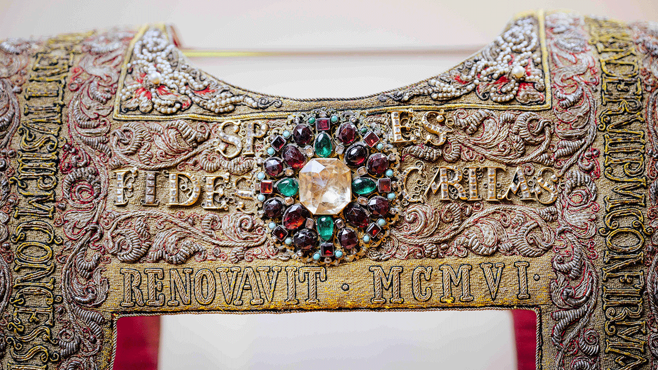 Erzbischof Dr. Udo Markus Bentz hat seine Pontifikalien aus seinem Heimatbistum Mainz mitgebracht. Einige haben durch eine Umgestaltung Paderborner Akzente erhalten. (Foto: Besim Mazhiqi / Erzbistum Paderborn)
