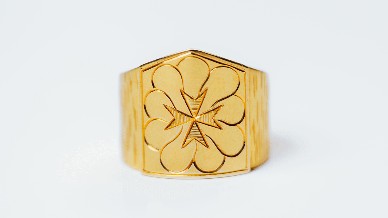 Bischofsringe werden seit dem 9. Jahrhundert gemeinsam mit dem Bischofsstab bei der Weihe übergeben, um zu zeigen, dass sich ein Bischof symbolisch an die Kirche beziehungsweise sein Bistum bindet. Erzbischof Bentz trägt den Ring des verstorbenen Mainzer Weihbischofs Dr. Werner Guballa (1944-2012), dem er zeitlebens verbunden war. Der Ring hat die Form einer Mitra. Unter der Spitze dieser Mitra sind auf der Innenseite des Ringes Christus und die beiden Emmausjünger dargestellt. Ursprünglich wurde der Ring in der Goldschmiedewerkstatt der Benediktinerinnenabtei St. Hildegard in Eibingen hergestellt. Vor seinem Amtsantritt in Paderborn hat Erzbischof Dr. Bentz ihn ergänzen lassen: Den Ring ziert nun auf der Außenseite zusätzlich eine gravierte Darstellung der Paderborner Kreuzfibel, die als ältestes archäologisch fassbares Zeichen christlichen Lebens in der Region gilt.