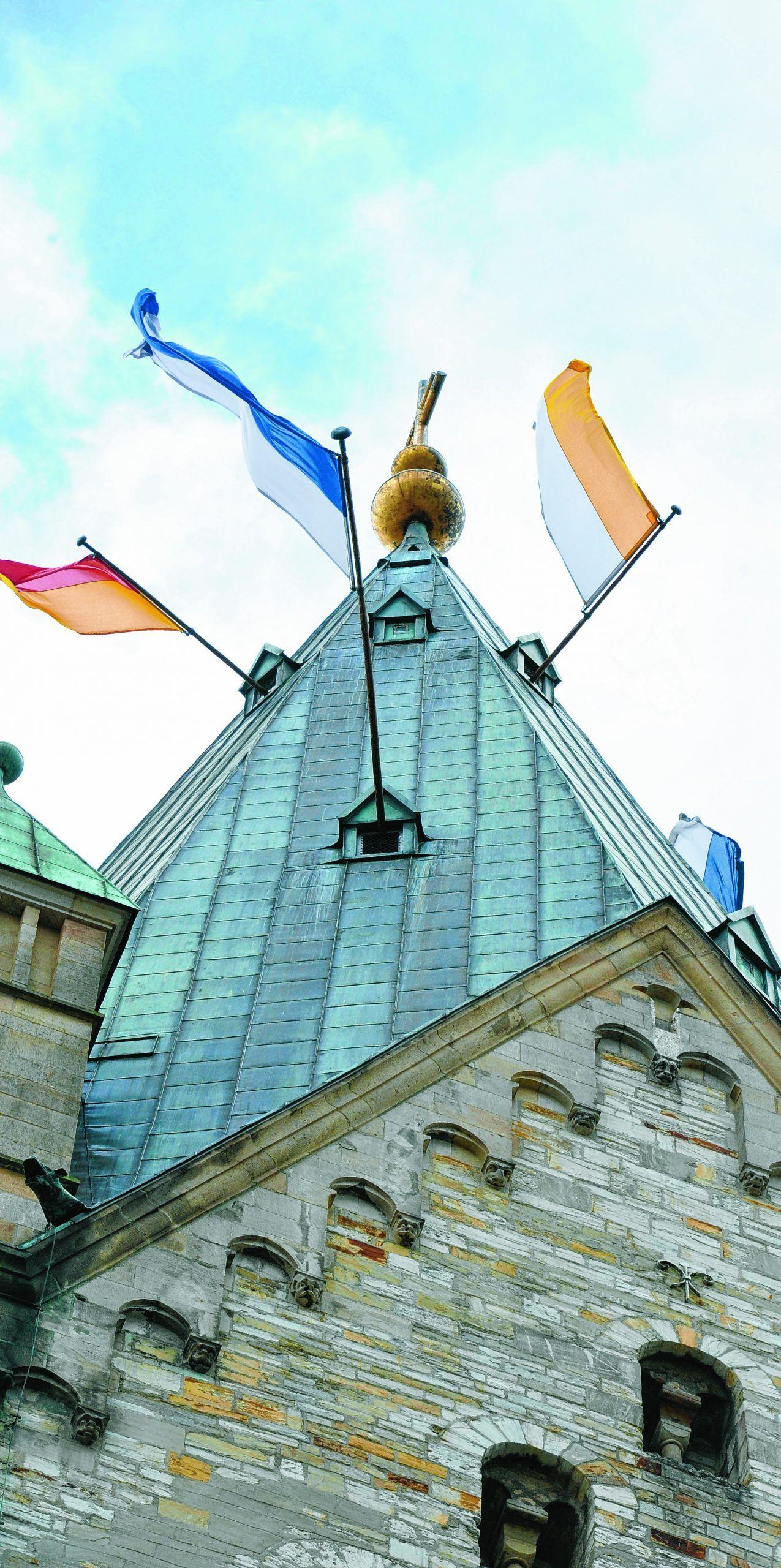Der Domturm zu Libori: fahnengeschmückt. Und was bleibt im Alltag? Eins gewiss: Der Blick über den Turm hinaus führt zum Himmel. Foto: Wiedenhaus