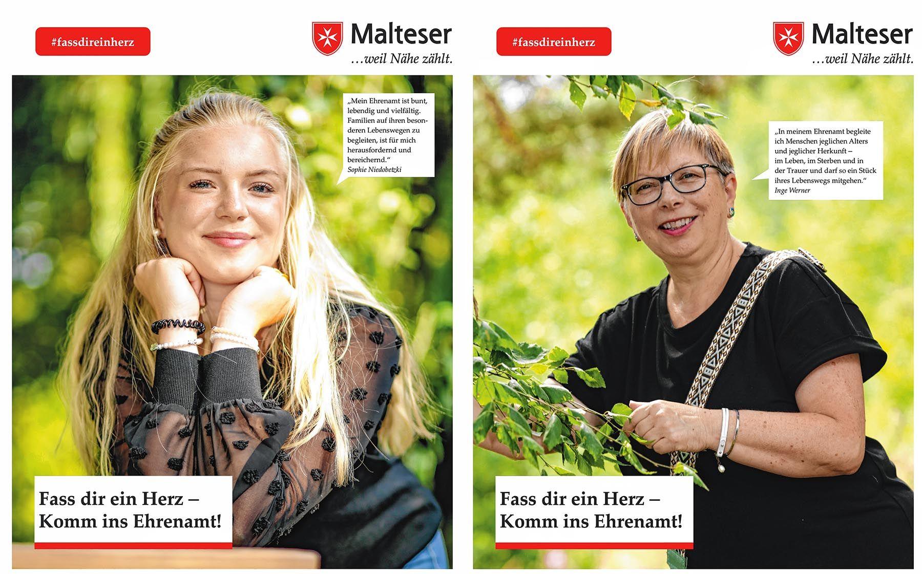 Sophie Niedobetzki (21) und Inge Werner (66) sind die Gesichter einer neuen Plakataktion der Malteser. (Fotos: Malteser)