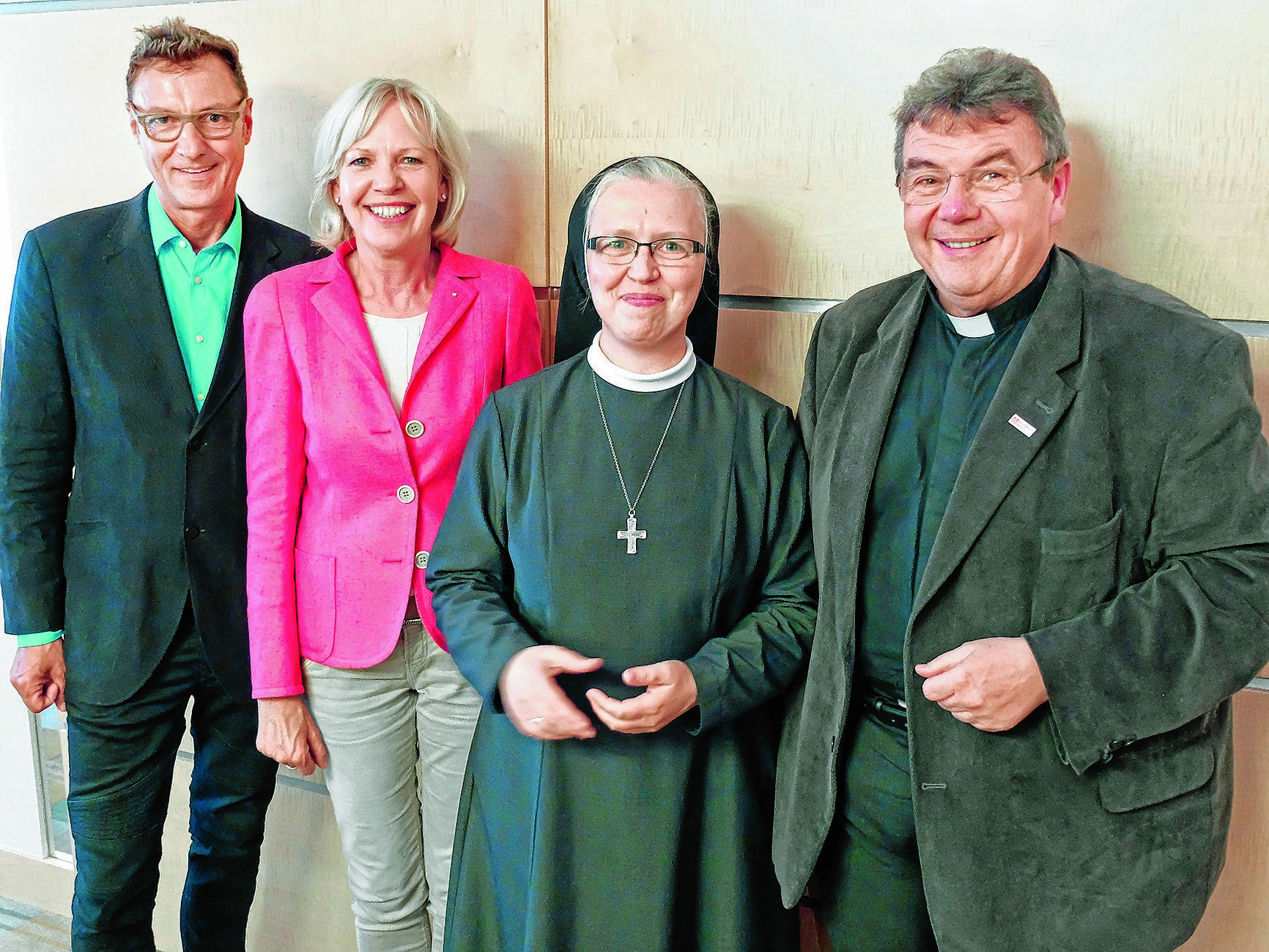Dietmar Ahle (Rotary Club Paderborn), Maria Schmidt (Rotary Club Paderborn), Sr. Margareta Kühn (Leiterin der „Manege“ Berlin) und Msgr. Georg Austen vom Bonifatiuwerk (v. l.) möchten ihre Zusammenarbeit weiter intensivieren, um möglichst vielen Jugendlichen einen erfolgreichen Start in das Berufsleben zu ermöglichen.