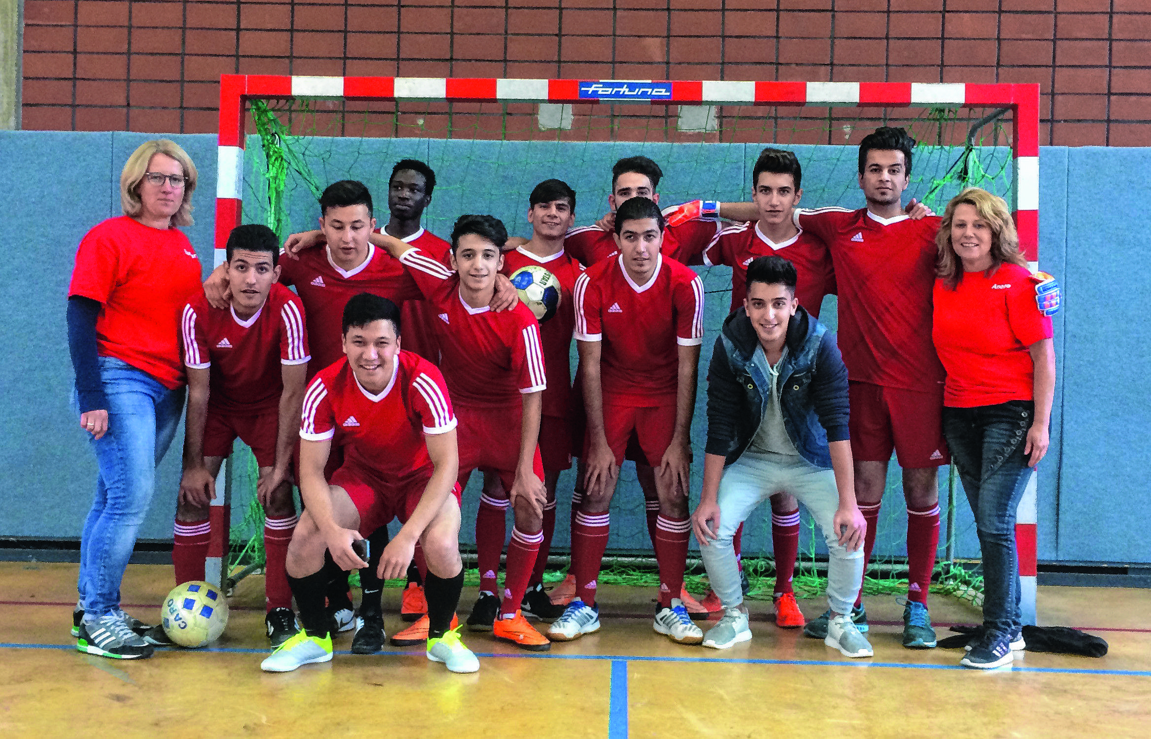 Im Collegium Bernardinum in Attendorn fanden unbegleitete minderjährige Flüchtlinge ein neues Zuhause. Inzwischen sind sie – nicht nur beim Fußball – gut in die Gesellschaft integriert. Rechts die stellvertretende Internatsleiterin Annette Hermes. (Foto: Lüttecke)