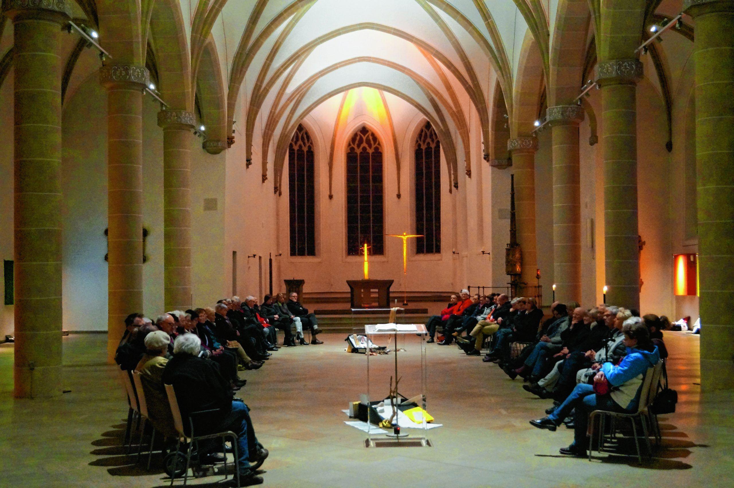 So war nicht alles, was beim Abschluss zu hören war, einfach schön. Es war jedoch berührend und, vor allem, ermutigend: Nach etwas Orgelmusik begrüßte Pfarrer Bernd Mönkebüscher die Anwesenden. Dann sprachen zwei Teilnehmer über ihr persönliches Glaubensleben: Eine ältere Dame ließ ihr ganzes Leben Revue passieren: Im November 1930 geboren, habe sie eine frohe, aber strenge Kindheit erlebt. Von der Kriegs- und Nachkriegszeit ging sie über den plötzlichen Tod ihres Mannes bis zur Gegenwart. Sie habe sehr guten Kontakt mit ihren Kindern und Enkeln, die alle im Frieden groß geworden seien. Doch auch wenn sie es bedauere, dass sie mit ihrem Vorbild nicht den Glauben bei ihren Kindern geweckt habe, so liebe sie sie.