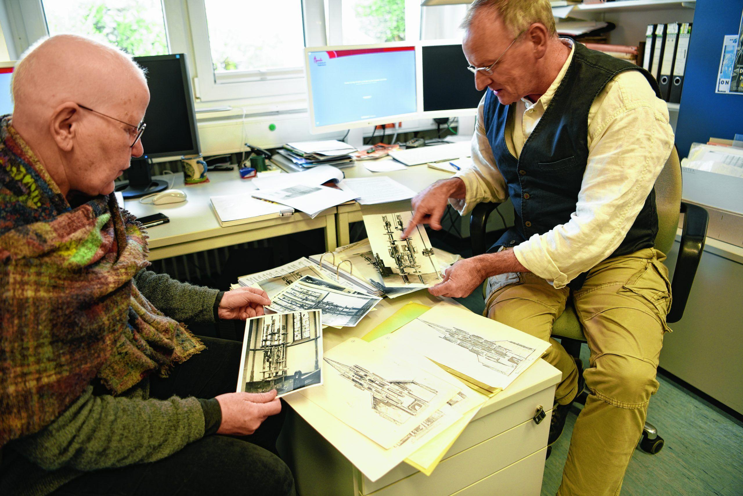 Arbeit am Erbe von Josef Rikus: Ursula Pütz und Hans-Ulrich Hillermann mit Fotos aus dem privaten Nachlass der Künstlerfamilie. Foto: Flüter