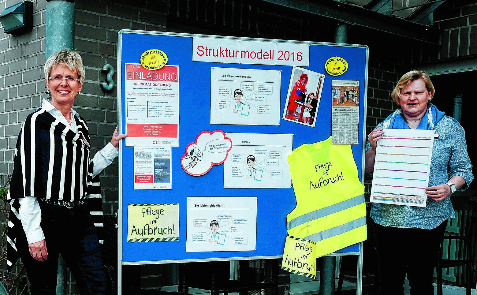 So ist es. Von Seiten des Gesundheitsministeriums wurde an Frau Professor Beikirch der Auftrag gegeben, und sie hat anhand der Vorgaben ein Strukturmodell entwickelt, das in dem Pilotprojekt unter anderem von unserer Einrichtung umgesetzt wurde. Alle Beteiligten bescheinigen diesem Modell, der richtige Weg aus dem Dokumentations-Dilemma zu sein. Wir sind hochzufrieden in unserer Einrichtung.