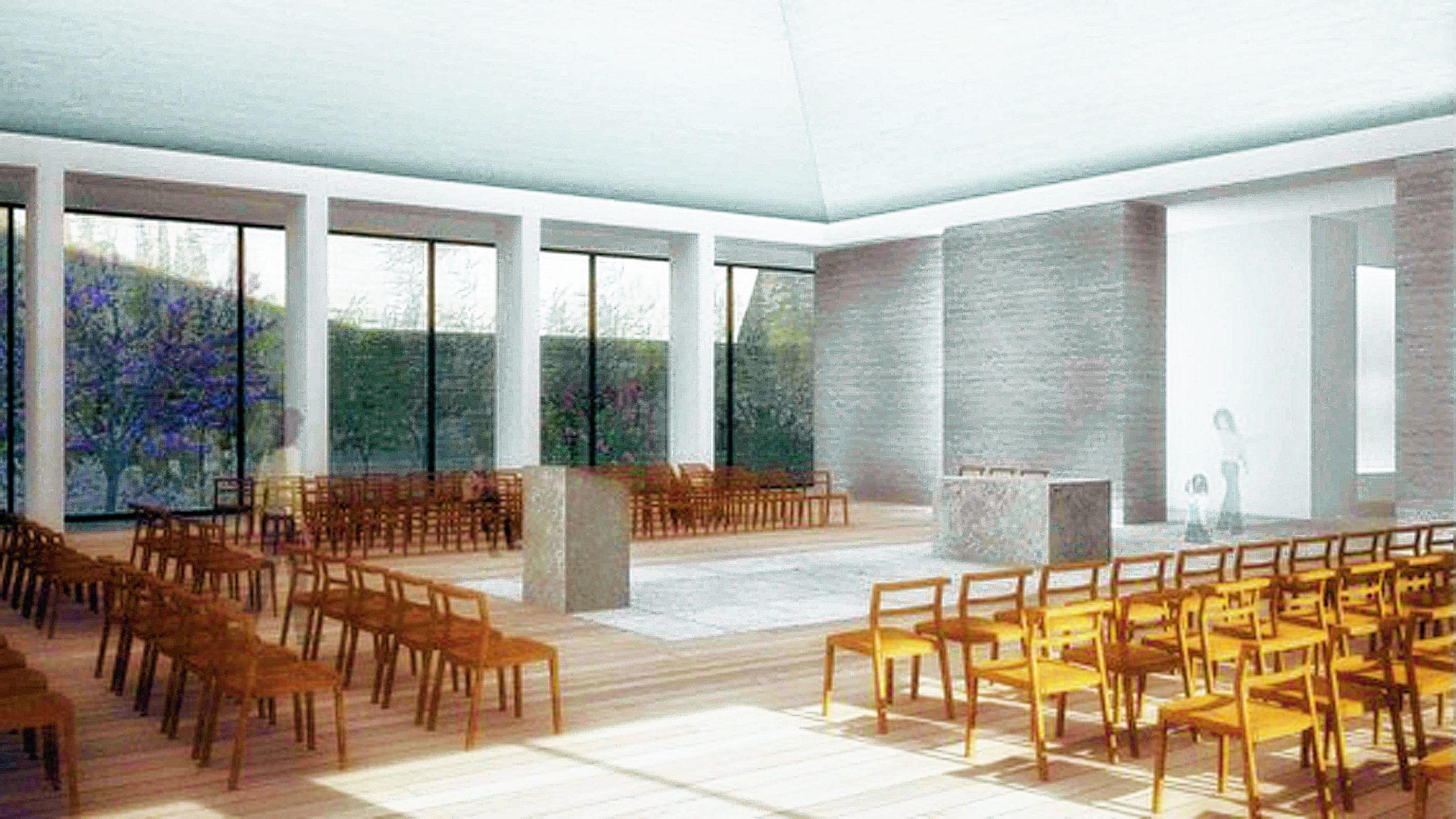 Vom Innenraum kann der Blick auf den Schöpfungsgarten gerichtet werden, der so Teil des Kirchenraumes wird. Foto: Schilling Architekten