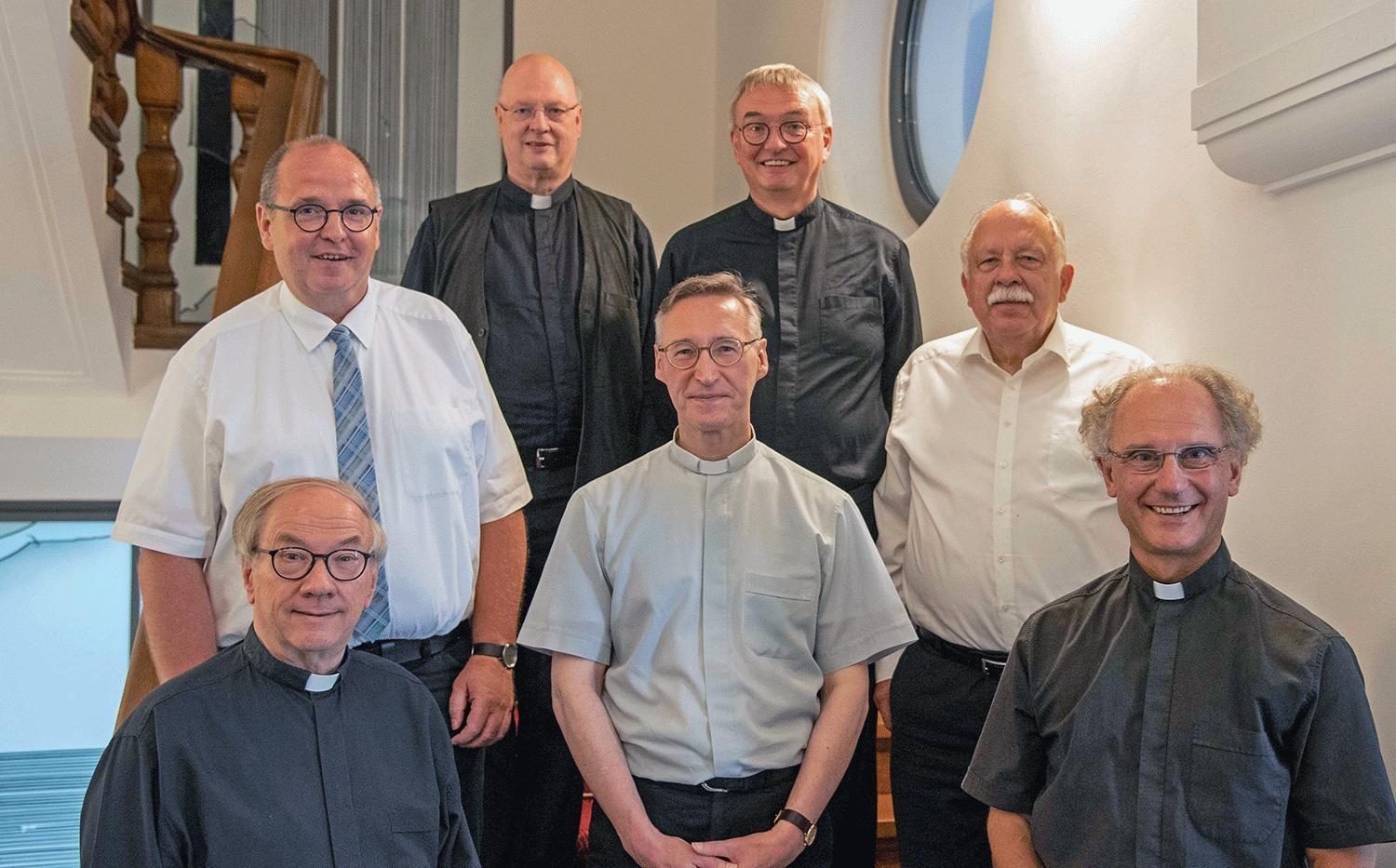 Die Vorstandsmitglieder des Diözesan-Bonifatiuswerkes Paderborn beschlossen verschiedene Projekte, um die katholischen Kirchengemeinden in den verschiedenen Diaspora-Gebieten des Erzbistums zu stärken. V.l.: Vorsitzender Pfarrer i. R. Wolfgang Winkelmann (Siegen), Diözesansekretär Matthias Micheel, Generalvikar Alfons Hardt, Dechant Gerald Haringhaus (Herford), Prälat Thomas Dornseifer, Pfarrer i. R. Gisbert Wisse (Arnsberg / Korbach), Pfarrer DDr. Markus Jakobs (Detmold). (Foto: Thomas Throenle)