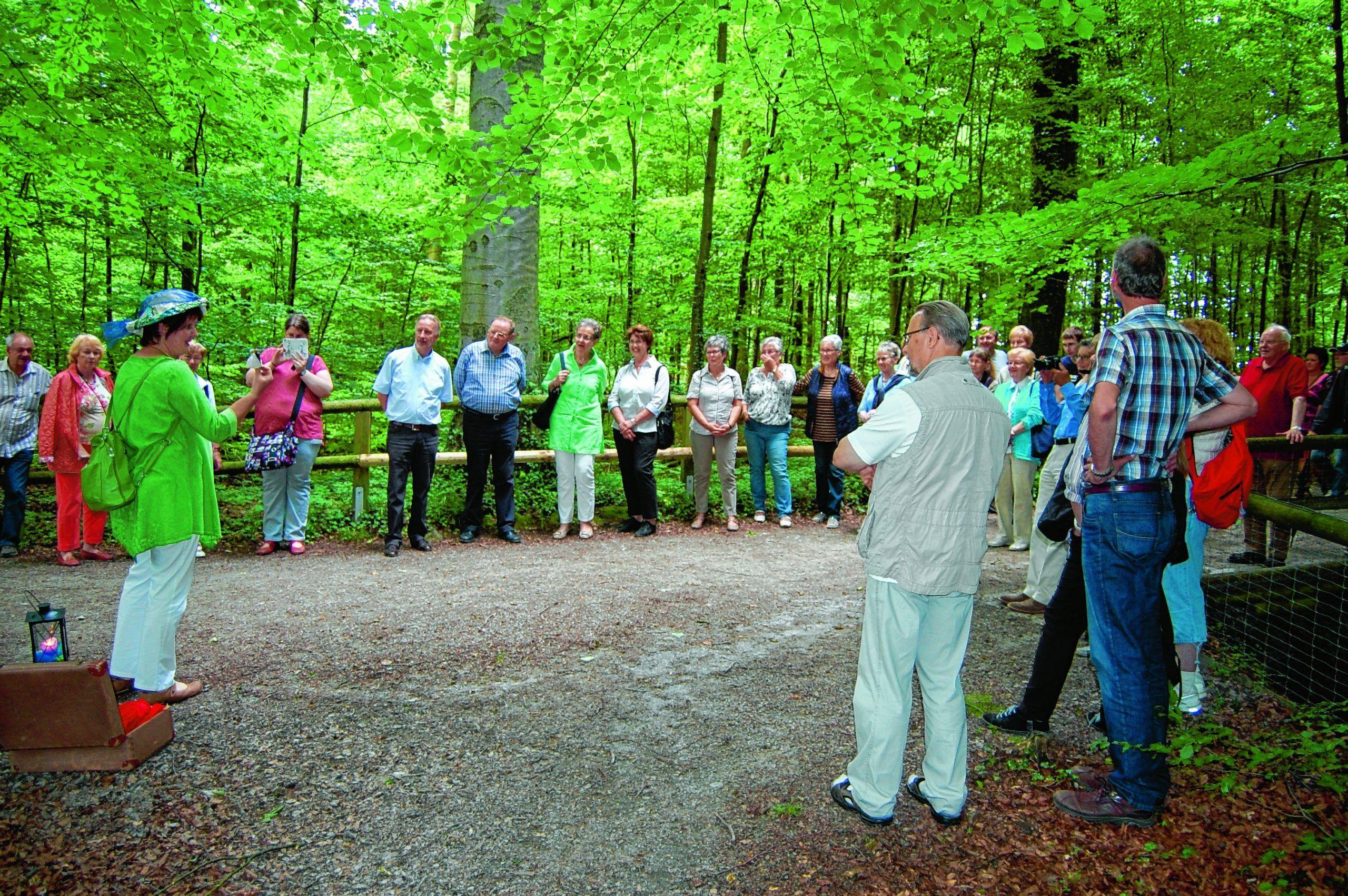 Vor der Fahrt zum Felsenmeer hat die Gruppe schon im Labyrinth in Oberrödinghausen innegehalten und bei einer Führung mit Rudolf Rath das Schloss Wocklum und seine Kapelle besichtigt.