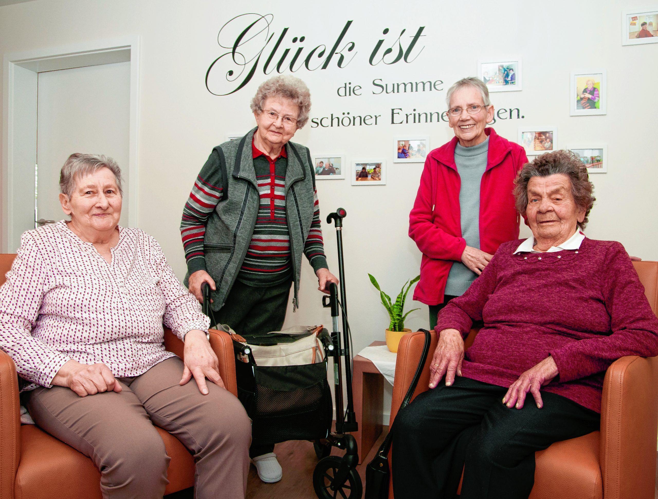 Sie sind im Tagespflegehaus St. Elisabeth Freundinnen geworden (v. l.): Waltraud Reick, Angelika Schröder, Theresia Holtkamp und Gertrud Jürgensmeier. Foto: Flüter