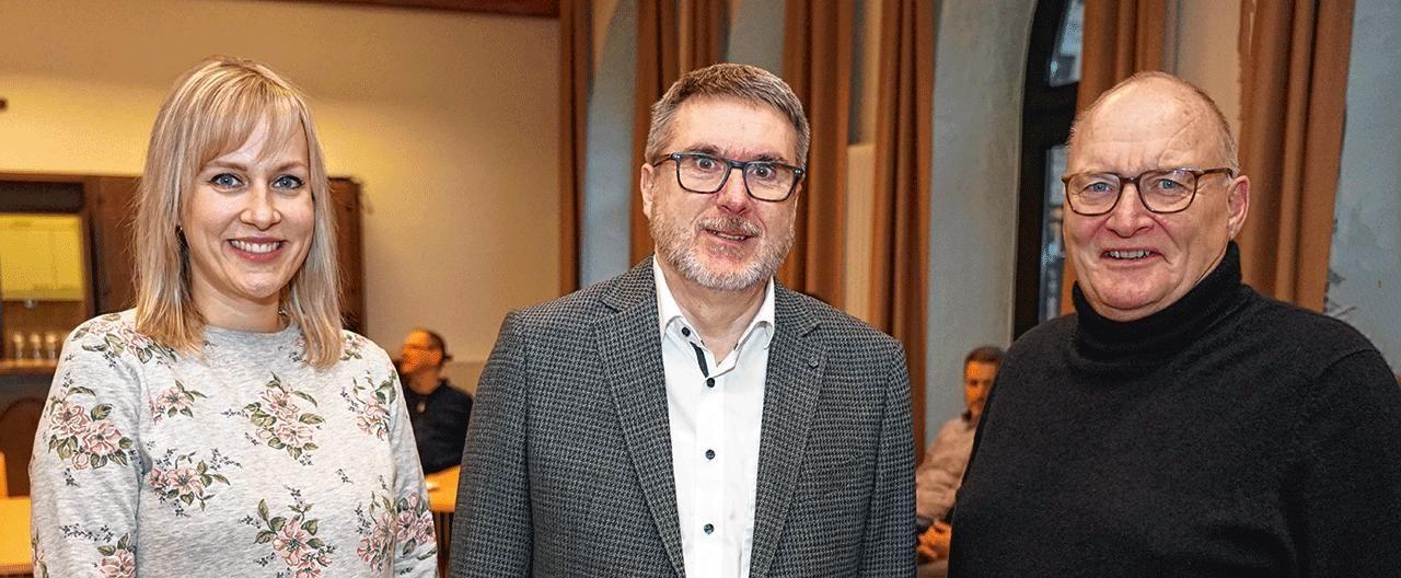 Gespräch über die Zukunft der Seelsorge in Dortmund (v. l.): Alina Sivaraj und Pfarrer Günter Eickelmann, Ansprechpersonen beim Erzbistum Paderborn für die „Pastorale Planung und Entwicklung“, mit Propst Andreas Coersmeier. (Foto: Michael Bodin/Erzbistum Paderborn)