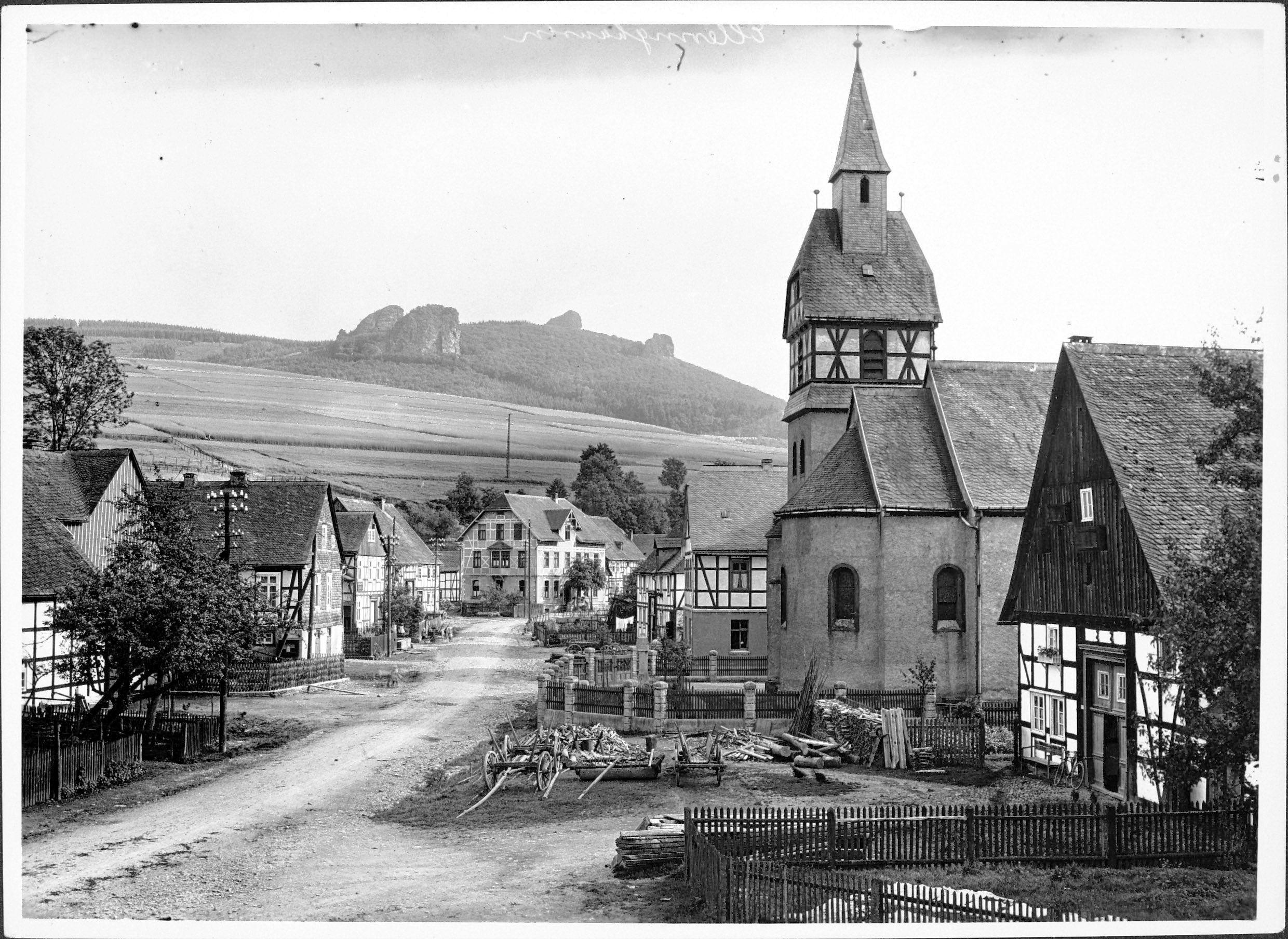 Eine Ansicht von Olsberg-Elleringhausen mit der alten Kirche, die 1969 abgerissen wurde.