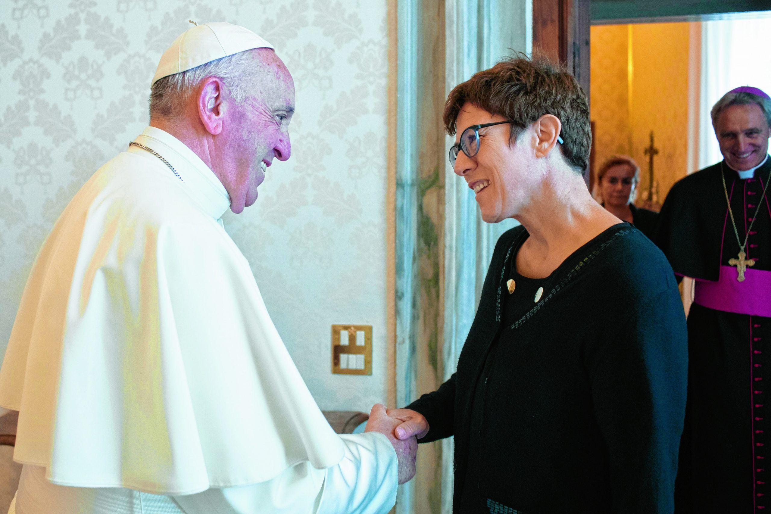 Annegret Kramp-Karrenbauer zu Besuch bei Papst Franziskus – keine „katholische Merkel“.Foto: KNA