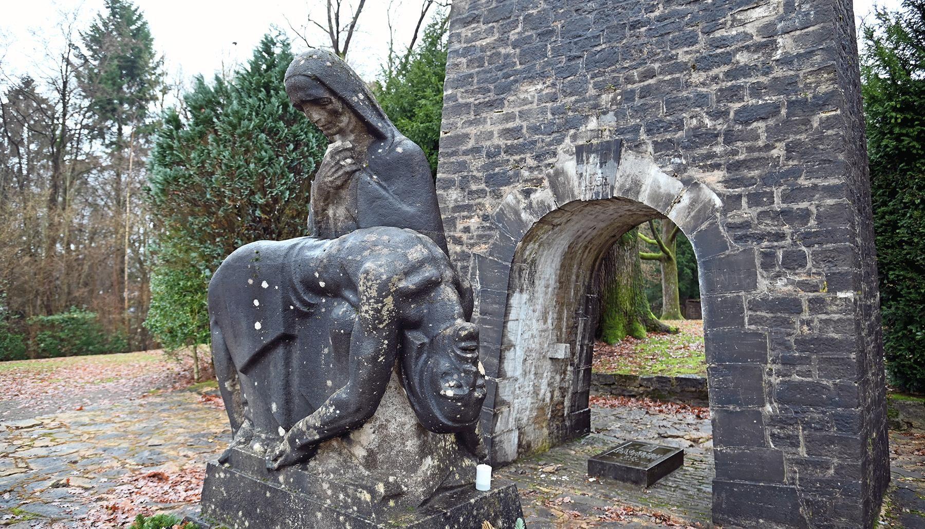 Die Pieta mit dem Torbogen im Hintergrund befindet sich hinter der Johanneskapelle in der Kapellenstraße in 33014 Bad Driburg.