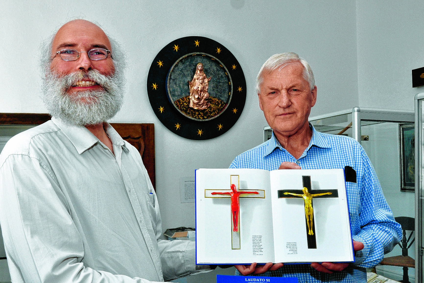 Matthias Bücker De Silva zusammen mit Gottfried Pavenstädt-Westhoff vom Freundeskreis Propstei Clarholz. Im Hintergrund die Muttergottes mit dem Jesuskind, umgeben von zwölf Sternen. Foto: Leskovsek