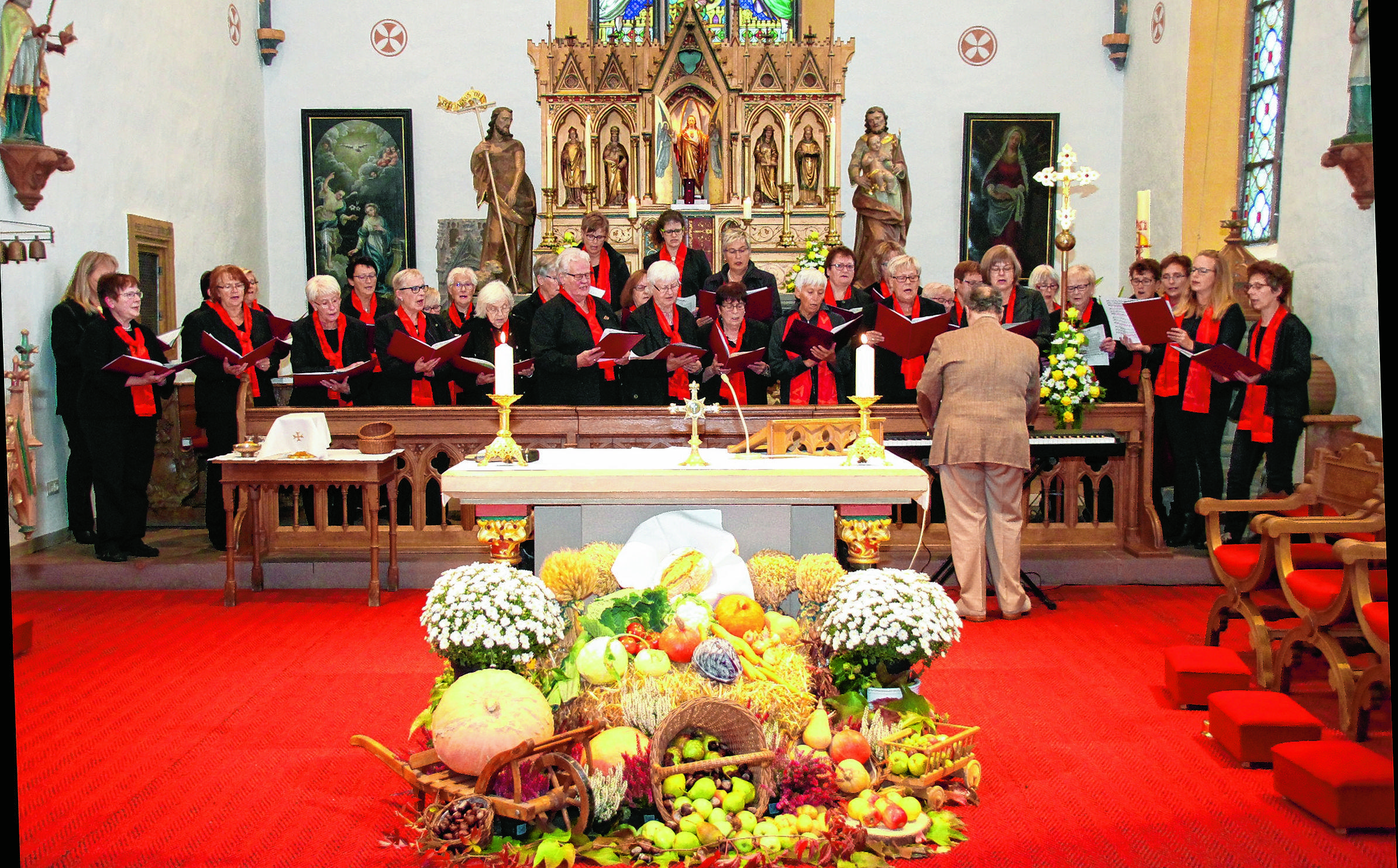Bei der musikalischen Gestaltung der Messfeier wirkten nicht nur der jubilierende Kirchenchor unter dem Dirigenten Michail Medwedew, sondern auch der Borgholzer Kinderchor um den MGV-Vorsitzenden Johannes Lecke sowie der Männergesangverein „Eintracht“ Borgholz mit. Der MGV war mit den Sängerinnen von St. Marien und St. Meinolf auch an einem kurzen Konzert nach der Messe beteiligt.