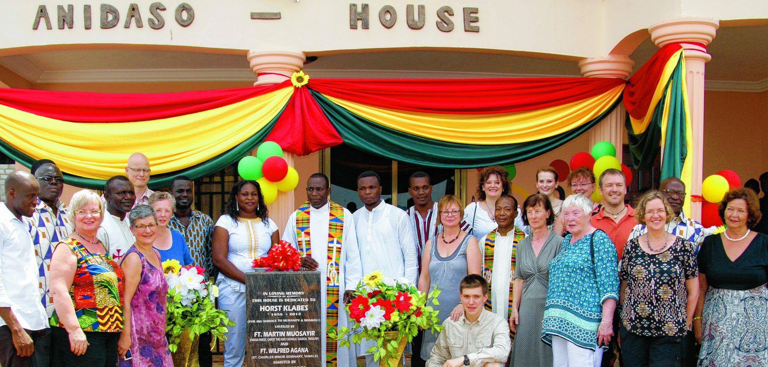 Zur Einweihung des neuen Kinderheimes „Anidaso-House“ reiste eine Gruppe von 14 Personen aus Lippetal, Höxter, Brakel, Steinheim und Hagen in die ghanaische Hauptstadt. Mit den Worten „Ein Traum wurde Wirklichkeit“ eröffnete Father Martin Muosayir aus Tinga in Nordghana den Festakt zur Einweihung des Kinderheimes. Damit verwies er auf den Traum, den Gabriel Cudjoe, der Leiter des Kinderheimes, schon lange hatte und zu dessen Verwirklichung Pfarrer Horst Klabes maßgeblich beigetragen hat. Die Feierlichkeiten im Garten des Waisenhauses entsprachen ganz der ghanaischen Tradition und waren für die deutschen Besucher faszinierend wie exotisch: Vertreter unterschiedlicher Konfessionen segneten sowohl die Räume des Hauses wie die anwesenden Menschen. Eine Trommelgruppe erfreute die Gäste mit afrikanischen Rhythmen und natürlich wurde auch getanzt.