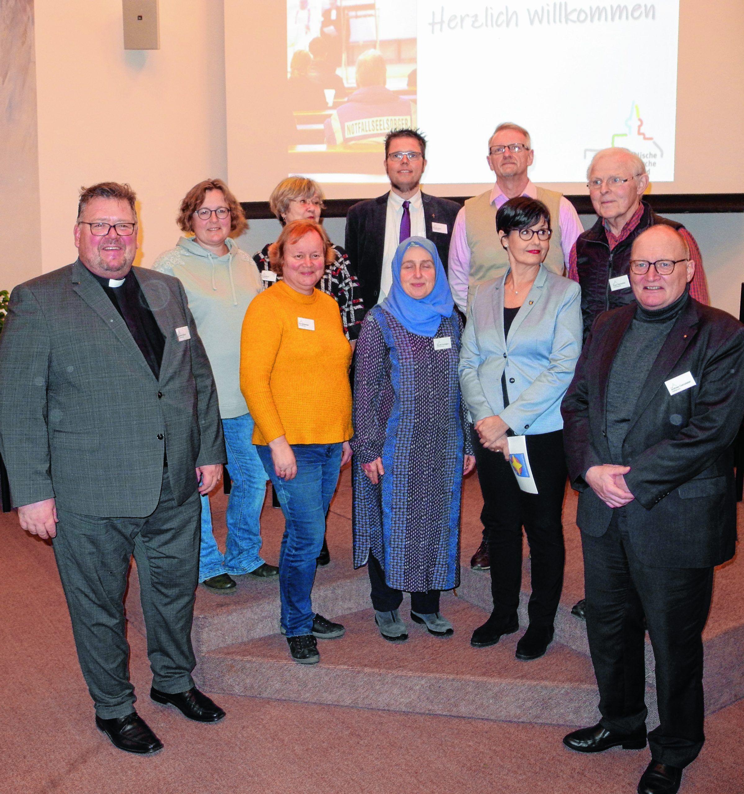 Bei der Lichtmess-Feier informierten der leitende Notfallseelsorger Pfarrer Meinhard Elmer (links) und Pfarrer Hendrik Münz (5.von links) Propst Andreas Coersmeier (rechts) sowie Ehrenamtler. Foto: Pohl