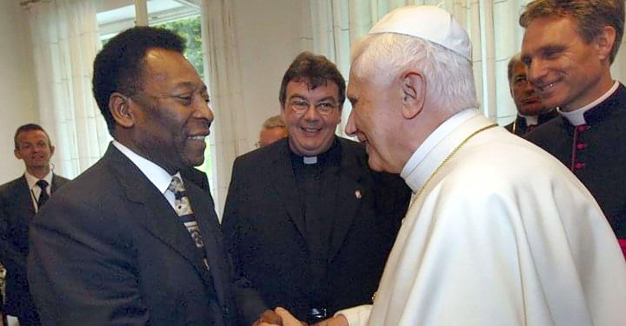 Beim WJT in Köln stellt Georg Austen (Mitte) dem damaligen Papst Benedikt Fußballstar Pelé vor. (Foto: privat)