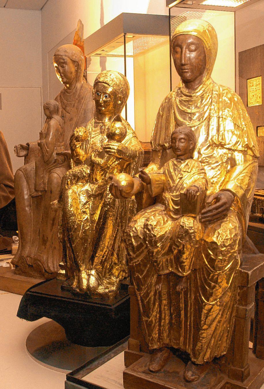 2005 trafen sie sich anlässlich einer Tagung: die Goldene Madonna aus Essen (Mitte) mit ihren „jüngeren Schwestern“, der Imad-Madonna aus Paderborn (links) und der Großen Goldenen Madonna aus Hildesheim. Foto: Martin Engelbrecht, Essen
