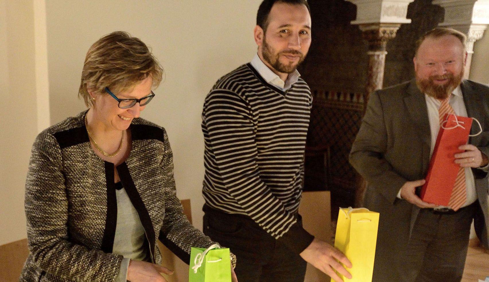 Sabine Hartmann, Imam Abdelkarim Elbazi und Peter Benyamin Wendt sprachen über Fasten und Essen und freuten sich hinterher über vegane Gummibärchen und fair gehandelten Kaffee.