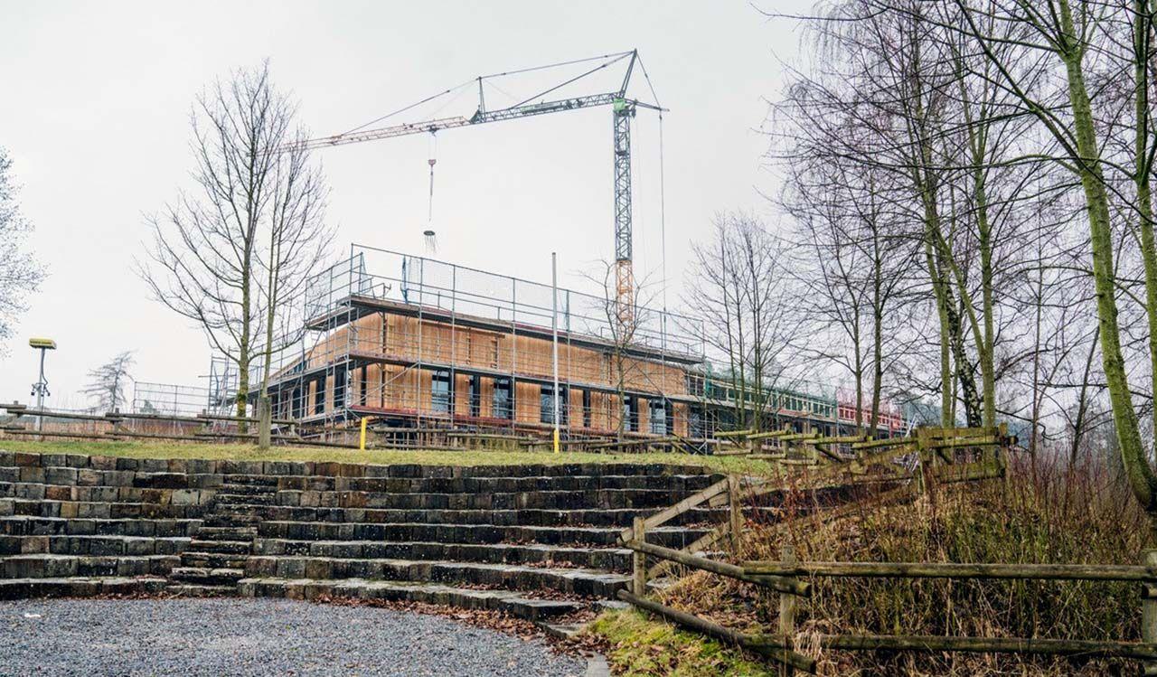 Das neue Gebäude erhebt sich über dem Zeltplatz. (Fotos: Tanja Münnich)