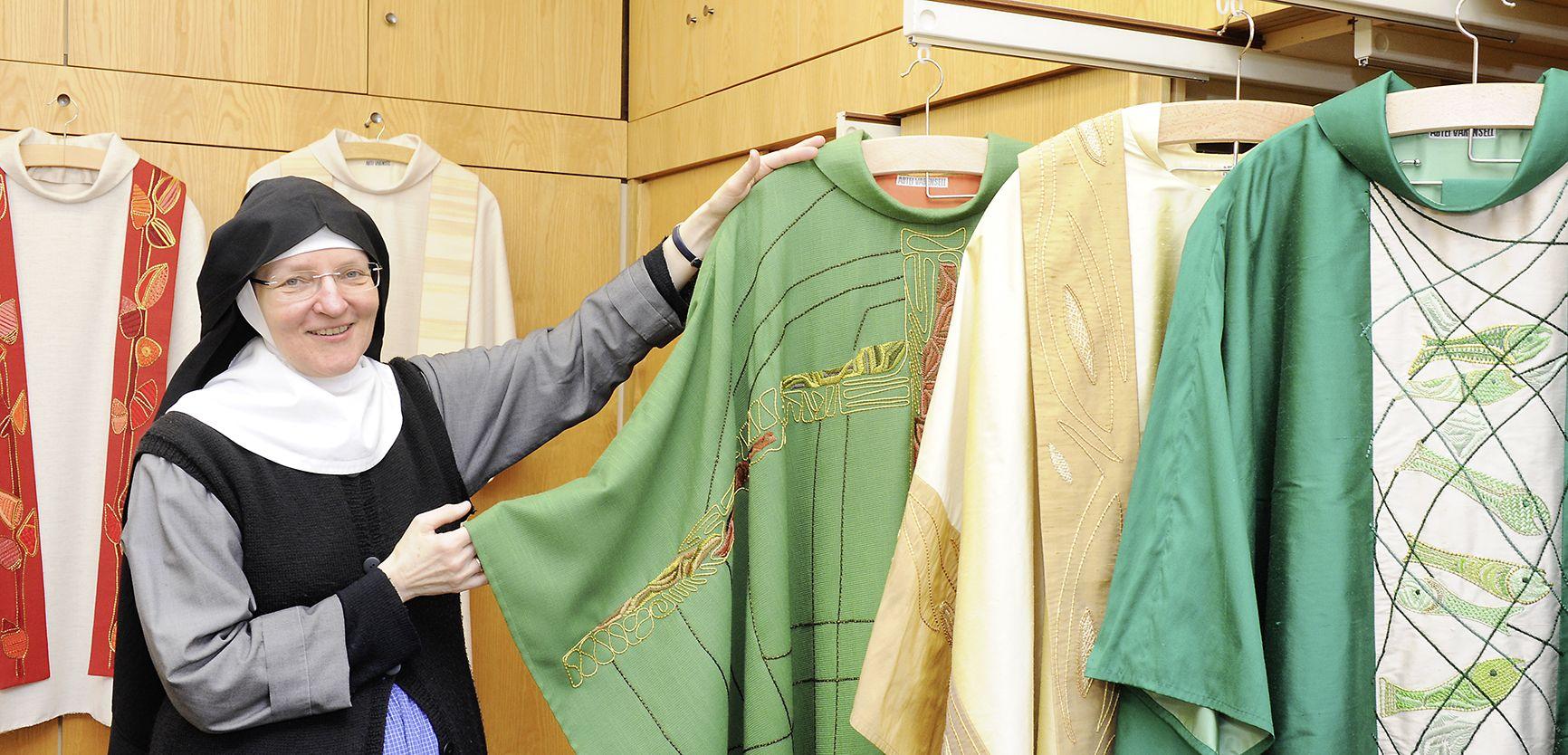 Der Kreis der Kunden werde kleiner, erklärt die Benediktinerin mit Blick auf die abnehmende Priesterzahl: „Auf der anderen Seite kommen aber auch neue hinzu wie etwa Laientheologen, die sich Gewänder anfertigen lassen.“