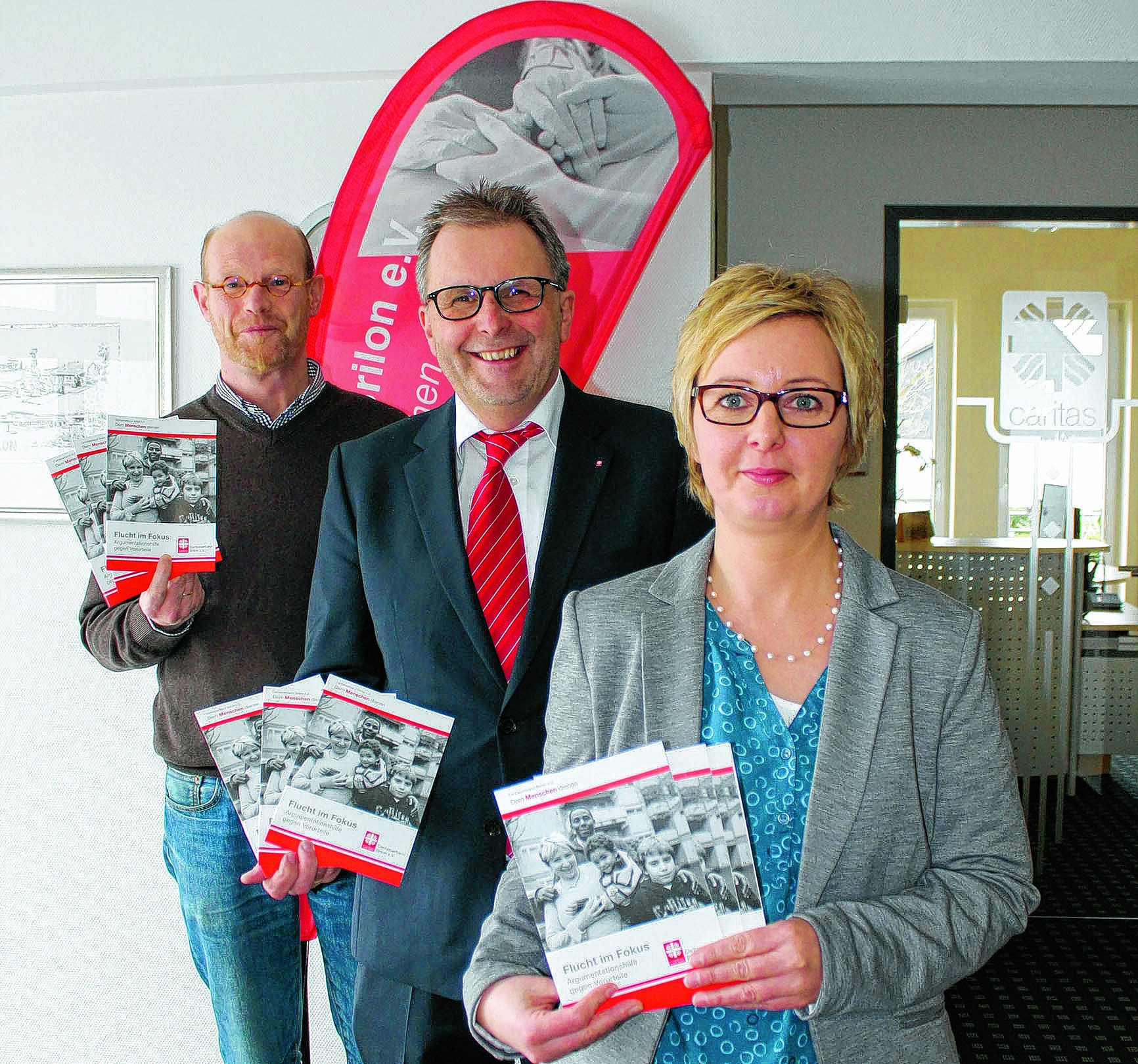 Stellen die Argumentationshilfe der Caritas Brilon vor (v. r.): Simone Geck (Fachstelle für Integration und Migration), Vorstand Heinz-Georg Eirund und Caritas-Koordinator Uli Schilling.