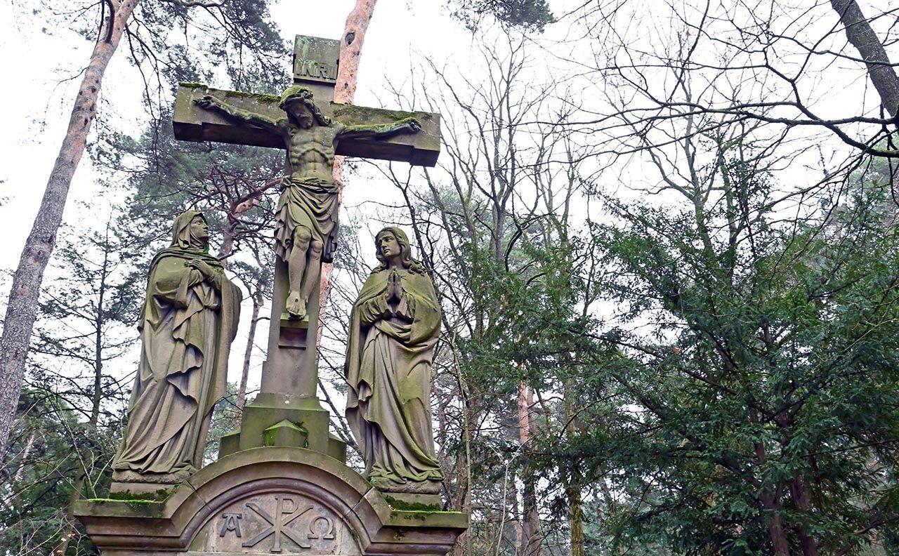 Eine Kreuzdarstellung auf dem Waldfriedhof in Schloß Neuhaus. (Foto: Patrick Kleibold)