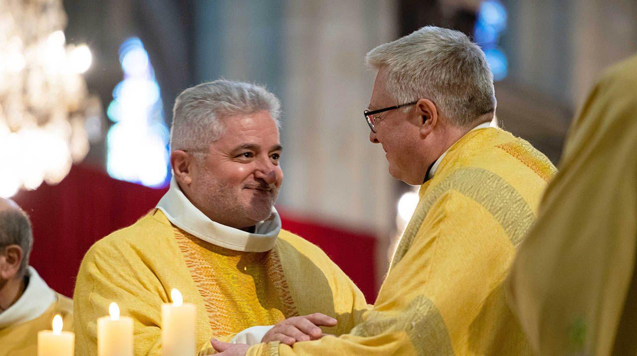 Zwei Diözesanadministratoren sprechen sich den Frieden zu: Père Grégoire Cador (l.) und Diözesanadministrator Monsignore Dr. Michael Bredeck. (Fotos: Till Kupitz)