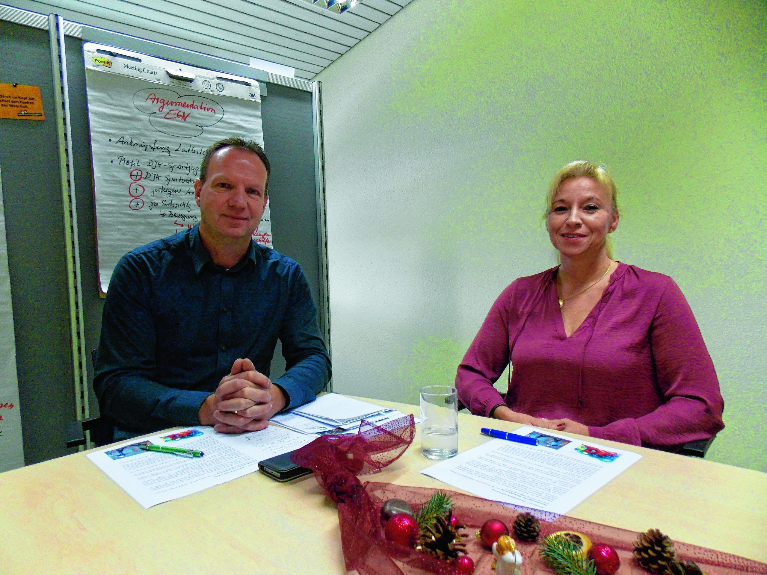 Beate Rohn und Hans-Peter Esch, Sportreferenten beim DJK Sportverband Diözesanverband Paderborn, erläutern das Bewegungskonzept.