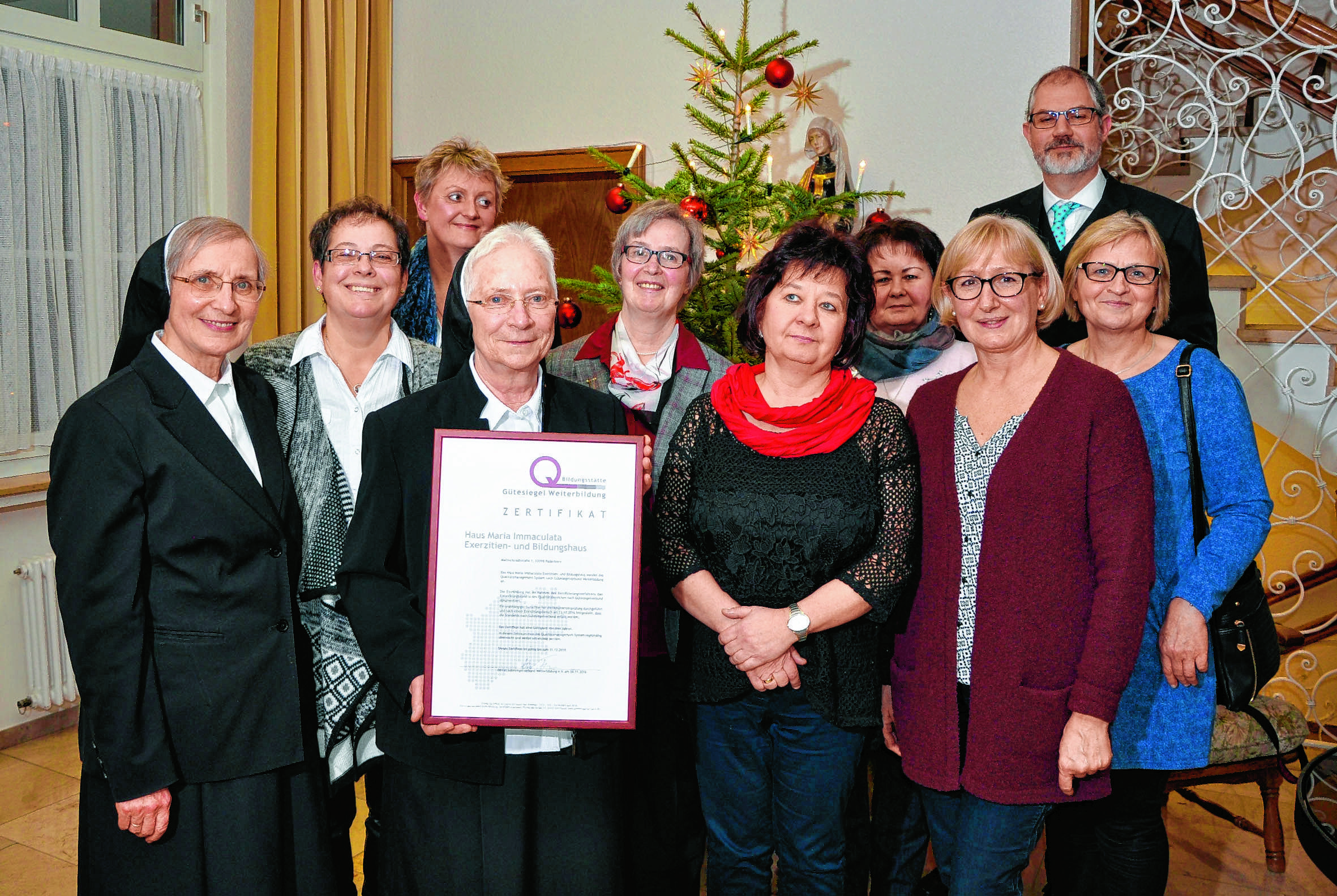 Paderborn. 2016 haben die Schwestern der Christlichen Liebe in Paderborn ihr erneuertes Exerzitienhaus Maria Immaculata vorgestellt. Jetzt haben sie den Nachweis für die Qualität ihres Angebotes auch schriftlich. Nach einer erfolgreichen Zertifizierung erhielten sie das Gütesiegel.