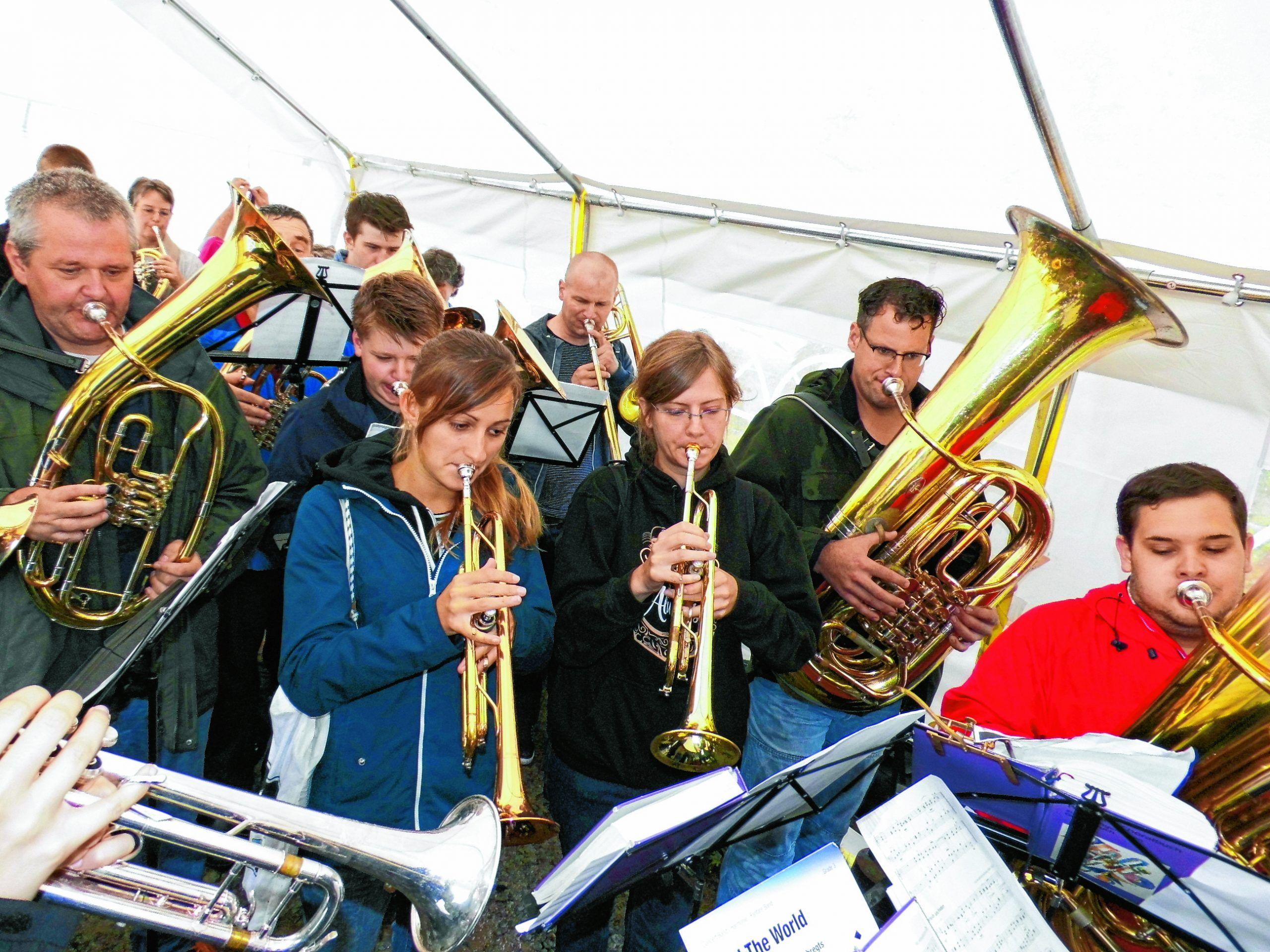 Von der Höhe der Halde der ehemaligen Zeche „Holstein“ schickten die Teilnehmer jeweils in ihrer Sprache Gebete himmelwärts, die alle ein Thema zum Inhalt hatten: Frieden. Zwar mussten wegen des unsicheren Wetters sich die etwa 100 Teilnehmer in dem kleinen Zelt etwas unterhalb des „Gipfels“ drängen, dem Anliegen der Veranstaltung tat das aber keinen Abbruch.