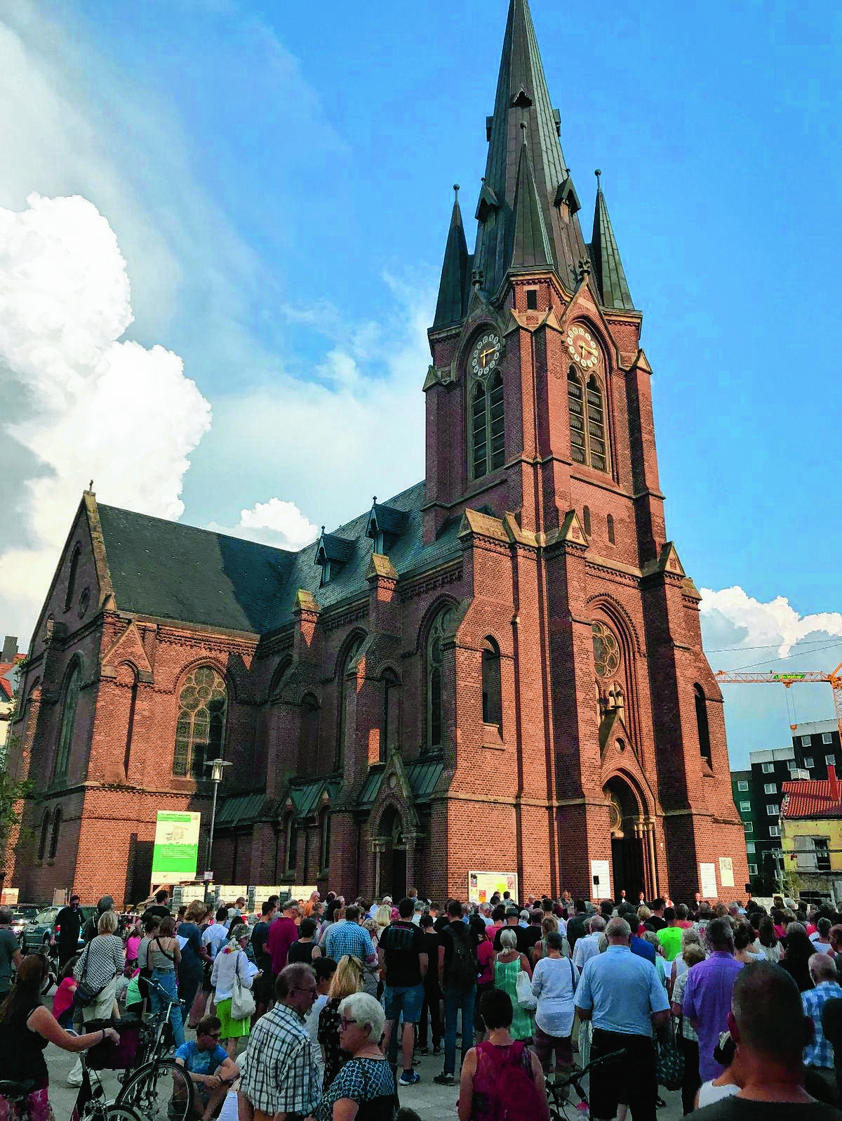 Rückblick: Am 10. September feierte der ökumenische Gottesdienst „Für Frieden in der Stadt“ seine Premiere. Und „ein Ende ist nicht abzusehen“, sagt Vikar Schmidtke. Im Gegenteil: „Es werden mehr Leute statt weniger.“ Diese Einschätzung teilt auch Pfarrerin Katja Lueg von der evangelischen Kreuz-Kirchengemeinde Herne. Bis zu 300 Bürgerinnen und Bürger feierten zu Beginn mit, inzwischen sind es noch immer rund 150. Diese Menschen setzten so ein „Zeichen für die bunte Vielfalt in Herne – gegen Fremdenhass und Ausgrenzung“, wie es die Organisatoren formulieren.