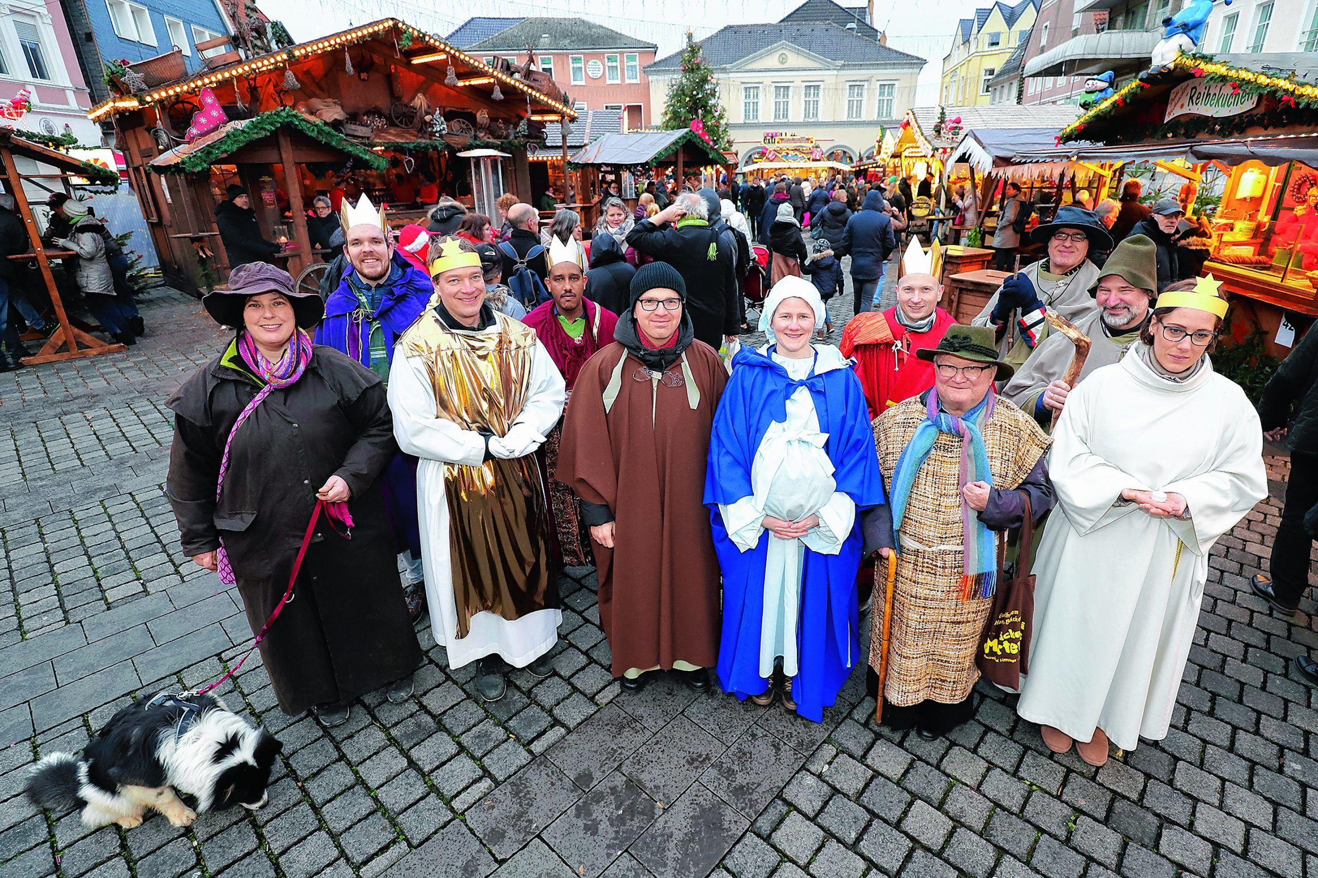 Die Darstellerinnen und Darsteller der lebendigen Krippe auf dem Weihnachtsmarkt in Unna. Foto: Hellweger Anzeiger/Marcel Drawe