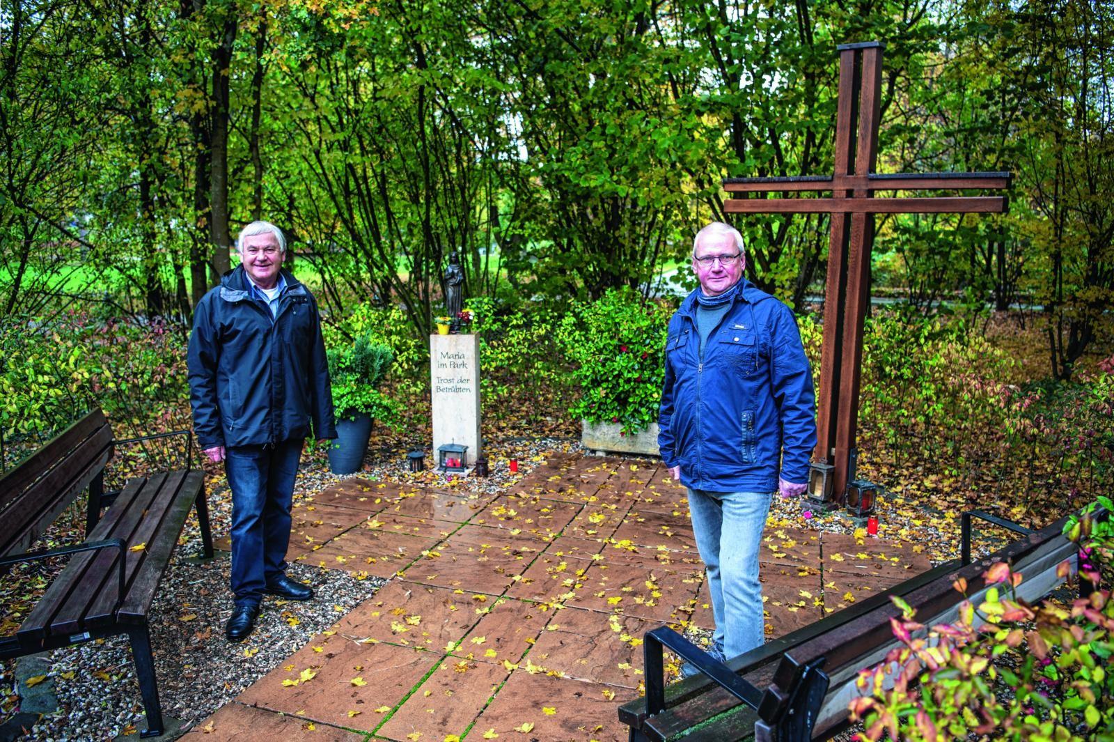 Hans Wistuba (rechts) und Karl Scharfen am „Ort der Stille“ im Kurpark. Foto: Flüter