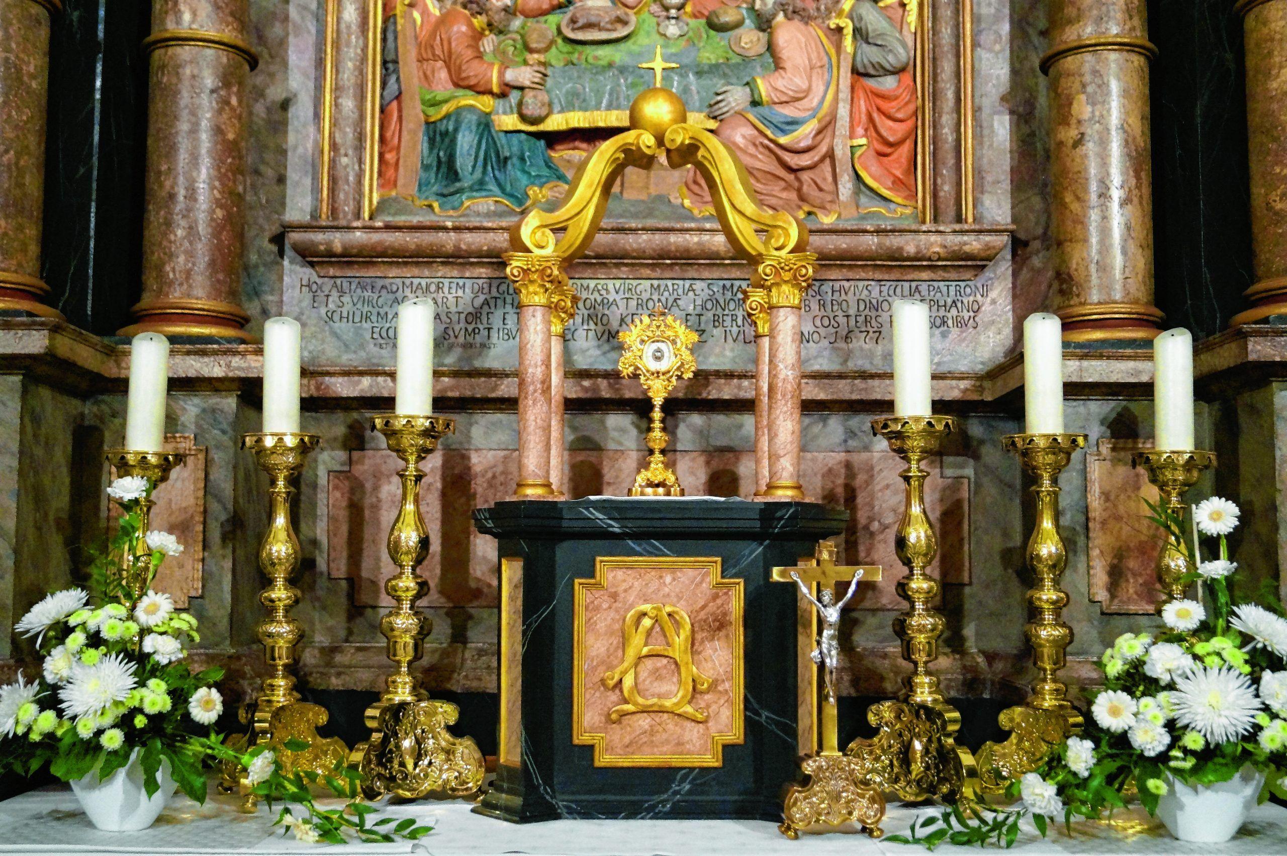 Mit dem Reliquiar des heiligen Martin erstrahlt der barocke Hochaltar von St. Martinus noch einmal prächtiger. Foto: Körtling