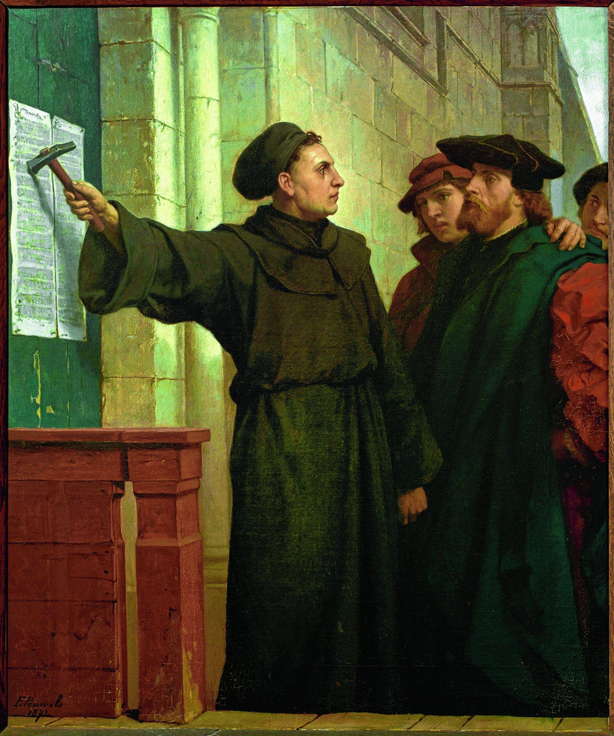 GEdanAm 31. Oktober 1517 schlug der Mönch Martin Luther mit Hammer und Nagel seine 95 Thesen zum Ablass an die Tür der Schlosskirche von Wittenberg und brachte damit die mittelalterliche Papstkirche zum Einsturz. So hat man sich das jahrhundertelang vorgestellt.