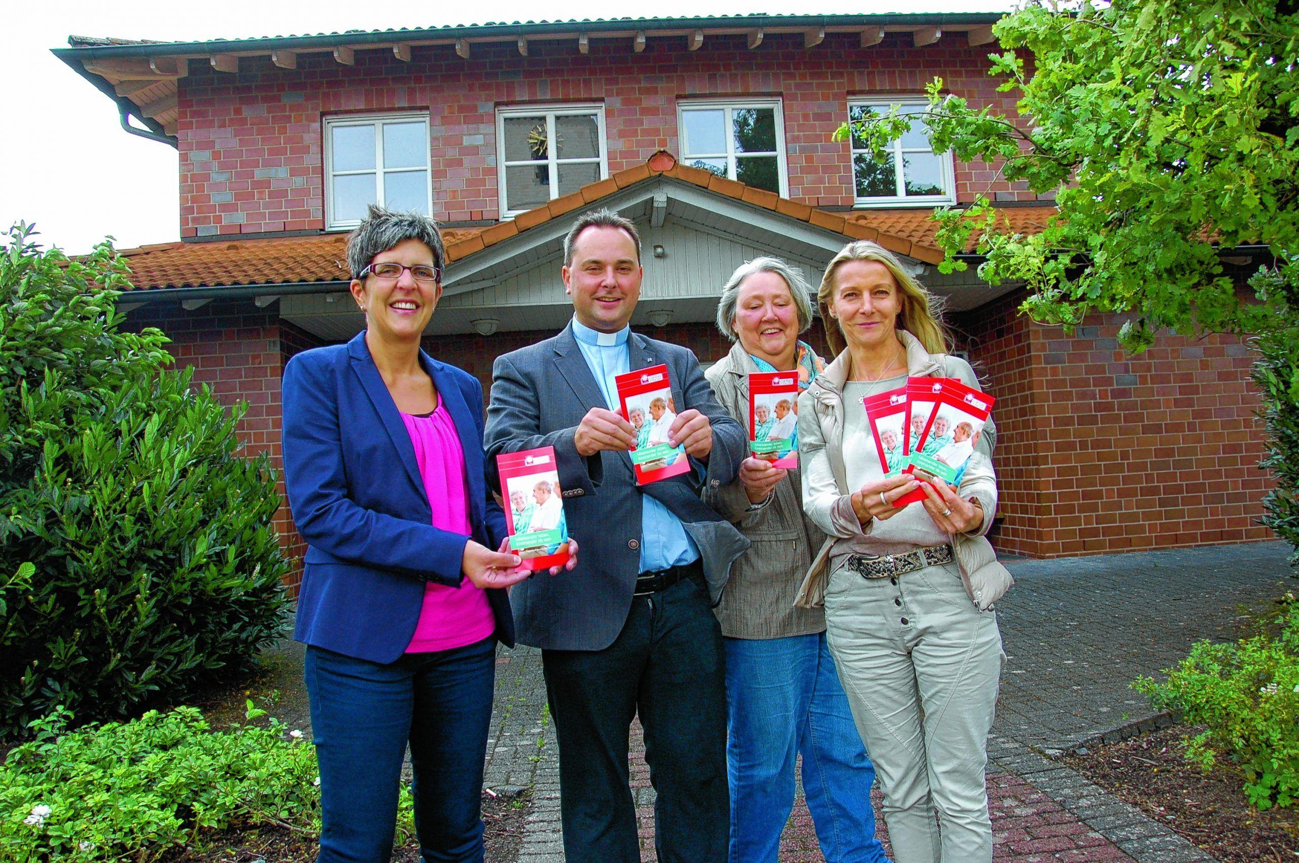 Fachbereichsleiterin Bettina Wiebers, Pastor André Aßheuer, die ehrenamtliche Mitarbeiterin Doris Sternschulte und Projektleiterin Dorota Schiwietz freuen sich über das Angebot.Foto: Caritas Fachbereichsleiterin Bettina Wiebers, Pastor André Aßheuer, die ehrenamtliche Mitarbeiterin Doris Sternschulte und Projektleiterin Dorota Schiwietz freuen sich über das Angebot.Foto: Caritas