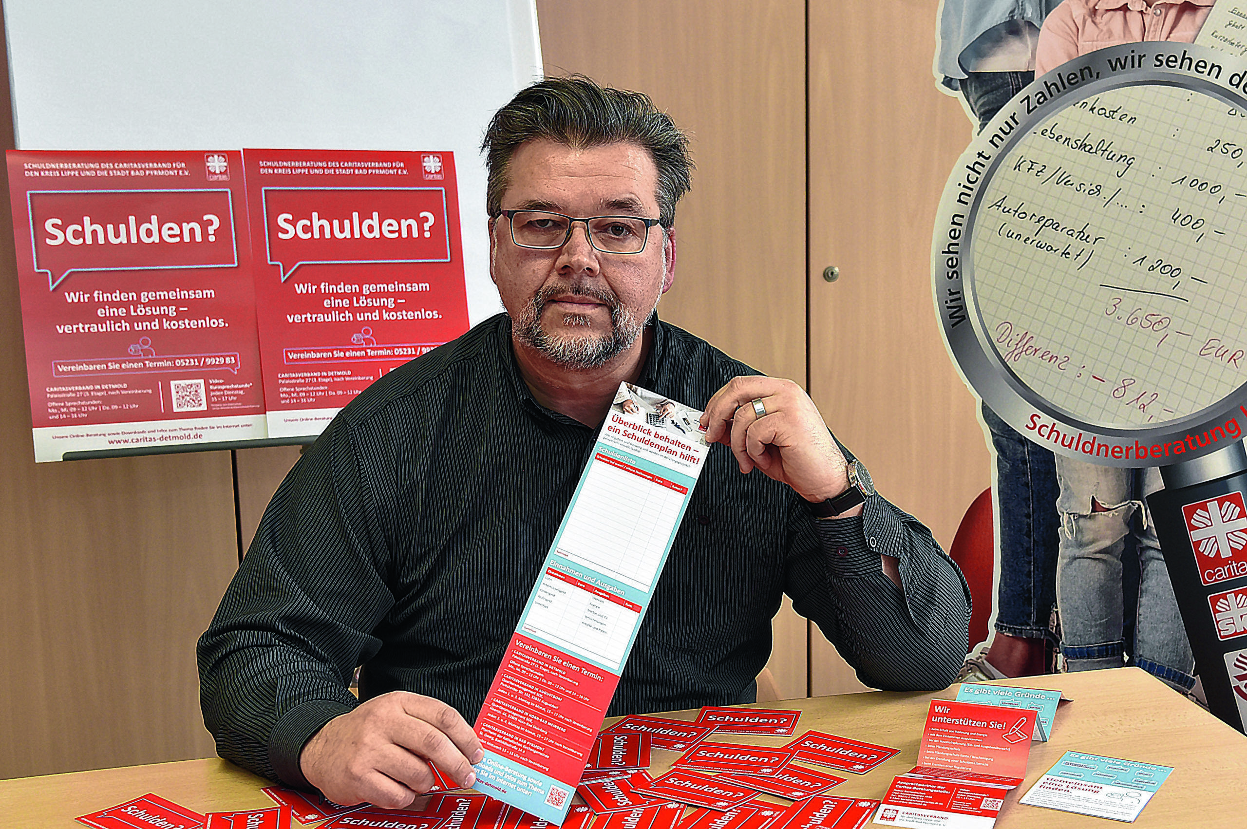 Neuer Flyer, verstärkte Präsenz im Internet, mehr lokale Sprechstunden: Caritas-Schuldnerberater Rainer Bartonitschek will den Beratungsstau, den die Pandemie auch im Kreis Lippe verursacht hat, abbauen. Foto: Caritas Lippe