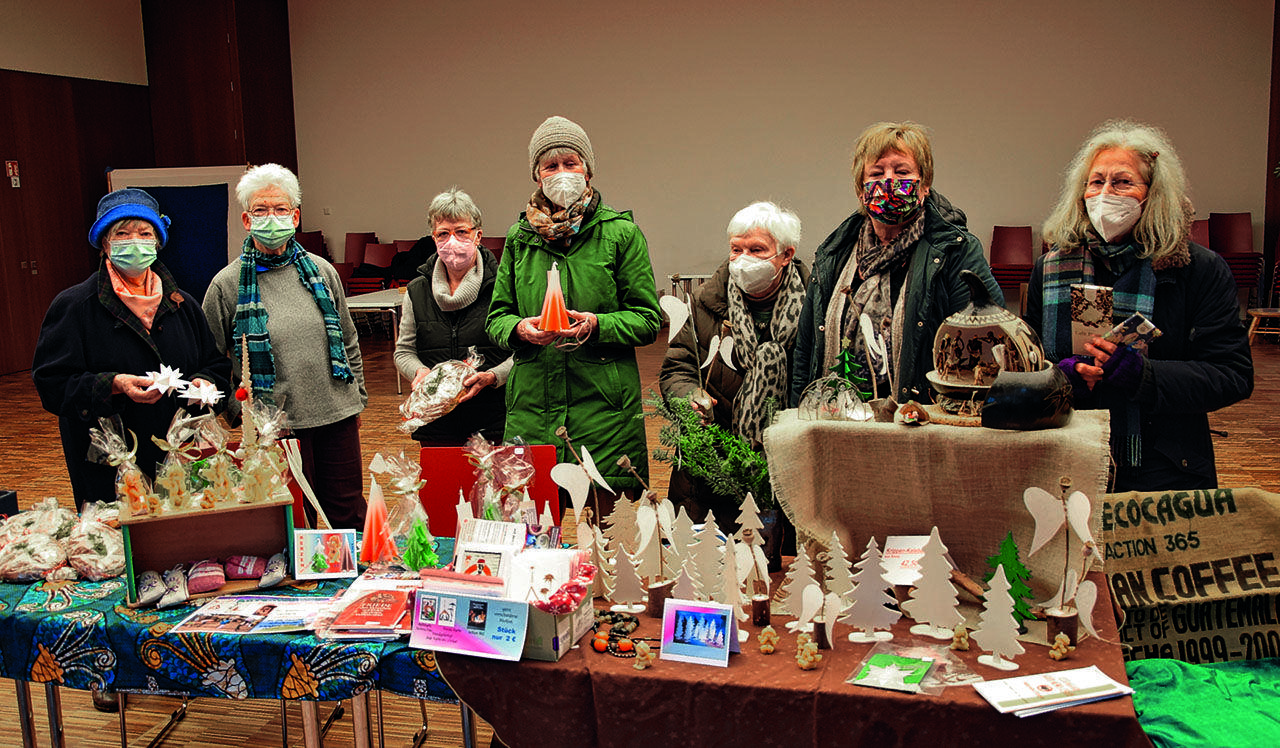 Zum vierten Advent wurden noch einmal im Forum Pankratius Stände mit Kunsthandwerk, Gebäck und vielem mehr aufgebaut. Dort hatten die Gottesdienstbesucher vor und nach dem Gottesdienst die Gelegenheit, letzte Weihnachtsdekorationen und Geschenke zu kaufen und zugleich den guten Zweck zu unterstützen. Von selbst gebackenen Plätzchen über Marmeladen und selbst gebastelte Sterne bis hin zu Engelskerzen – das Angebot war wie immer vielfältig. Und die Einnahmen waren ein versöhnlicher Abschluss für das Jahr 2021. Im nächsten Jahr hofft das Kenia-­Team ­natürlich auf mehr Gelegenheiten, um Spenden für die so wichtige Arbeit in Nairobi zu sammeln.
