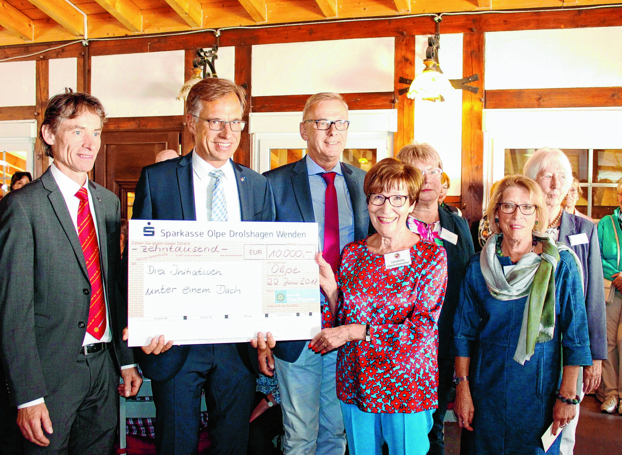 Einen großen Teil der Umbau- und Investitionskosten steuerte der Rotary Club Olpe-Biggesee bei. Club-Präsident Christoph Heuel übergab mit weiteren Clubmitgliedern den symbolischen Scheck in Höhe von 10 000 Euro an Lieselotte Harnischmacher und weitere Vertreterinnen der Projektbeteiligten.