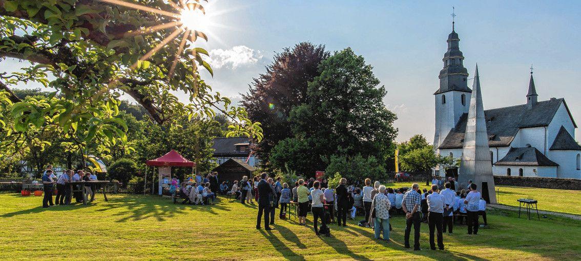 150 Gäste aus ganz Südwestfalen trafen sich bei schönstem Sommerwetter auf der Wiese an Biermanns Scheune und wurden begrüßt von Elmar Reuter, Vorsitzender des Sauerländer Heimatbundes, für das ausrichtende „Netzwerk Wege zum Leben. In Südwestfalen.“, Pfarrer Erik Richter für die Pfarrei St. Peter und Paul Wormbach und Christian Schürmann für die Dorfgemeinschaft Wormbach. Gleich zwei Chöre, die Chorgemeinschaft Wormbach und der Popchor NJoy aus Westfeld, stimmten die Besucher musikalisch auf den Abend ein.